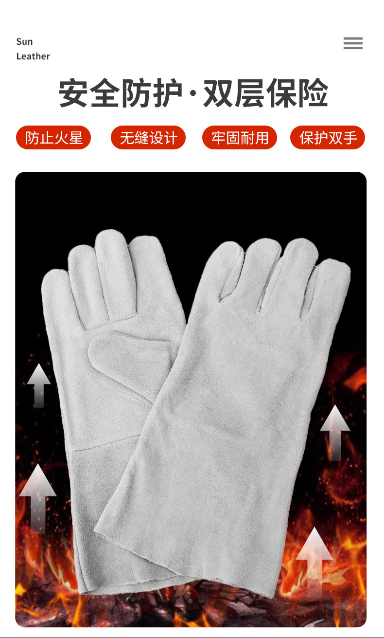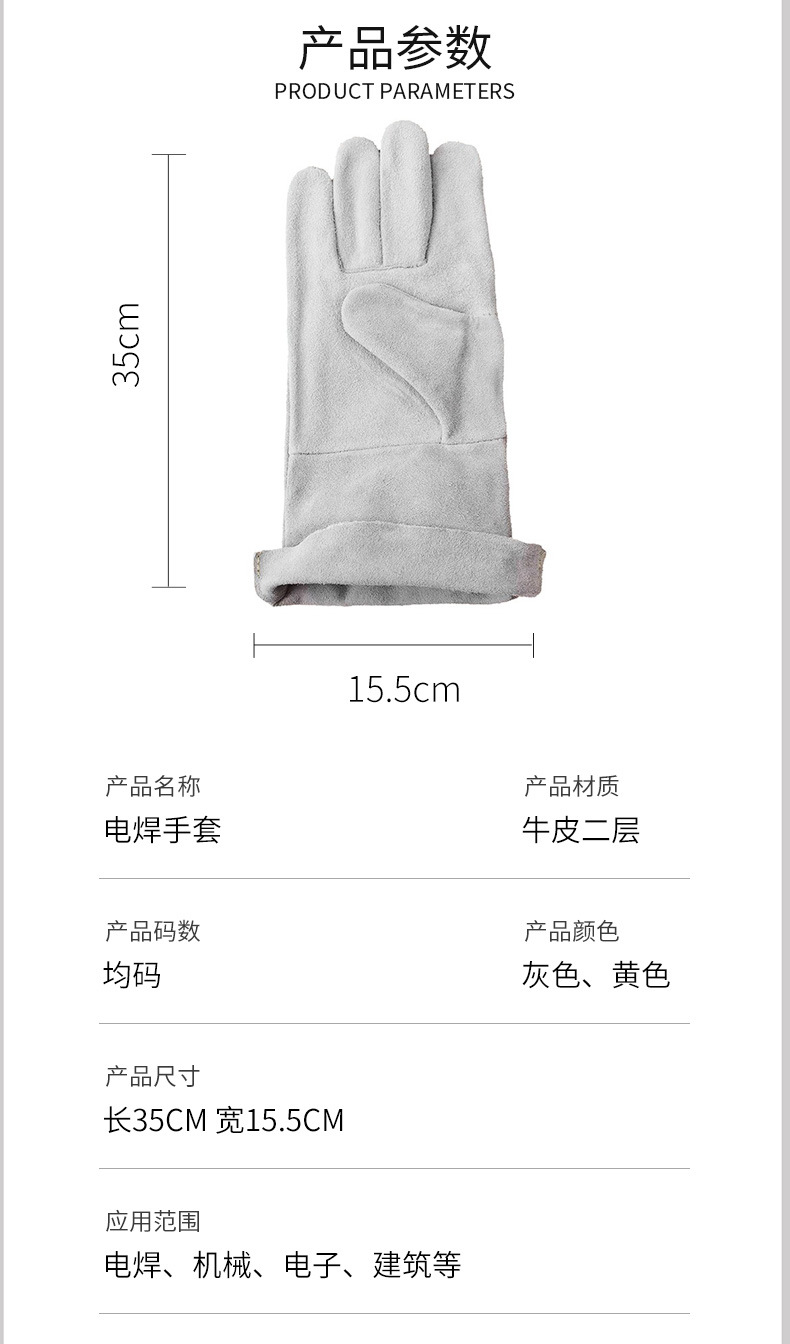 包装清单:1旭利达电焊手套 焊工手套 电焊劳保手套 焊工二层皮手套 耐热