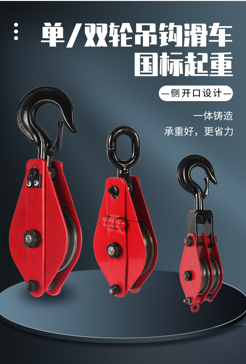 商品名称:合恒工品单轮吊钩盘石单轮起重滑车多吨位开口吊钩链环铁滑车国标吊装滑车滑轮组