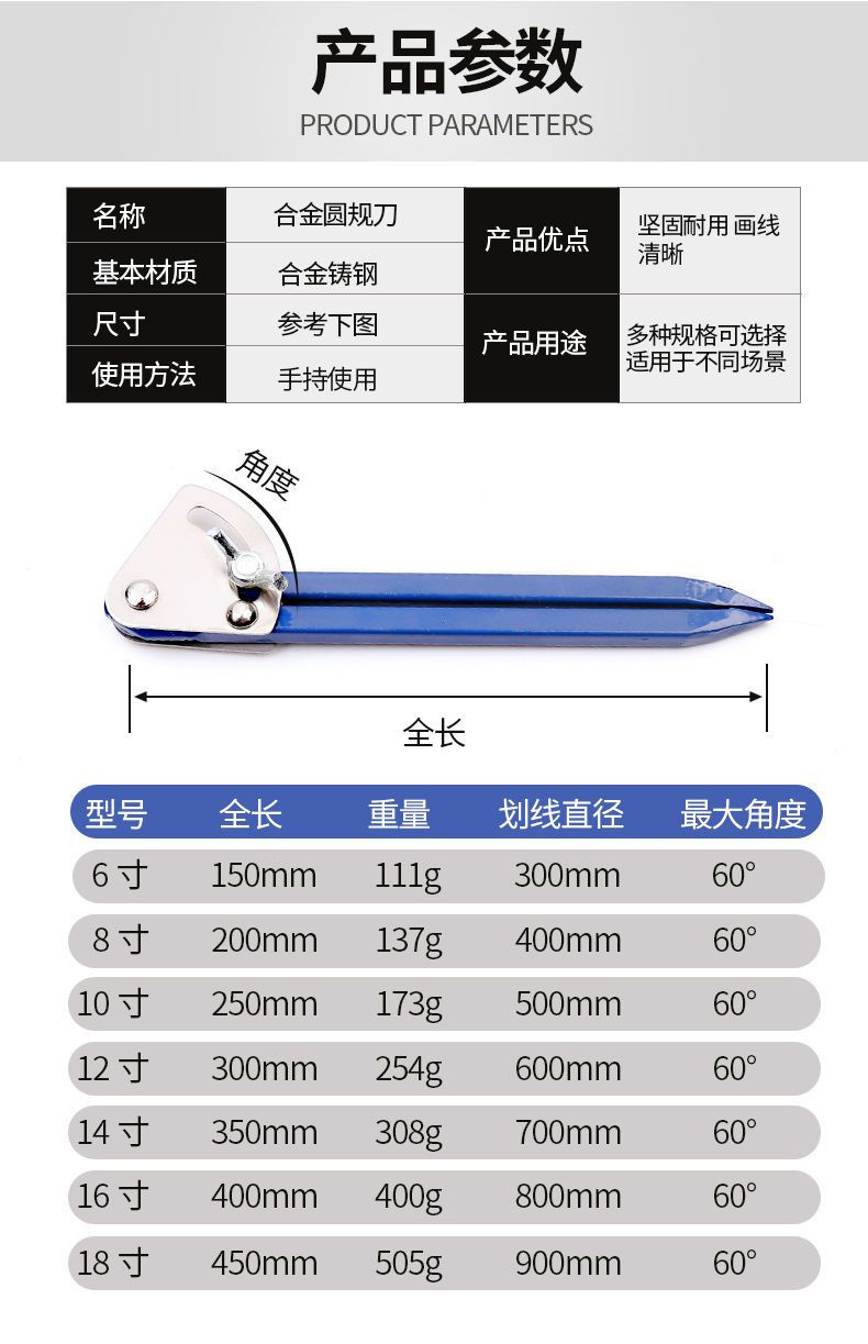 商品名称:划规钳工专用圆规工业用钨钢合金大号铁划归木工机械划线神器画规