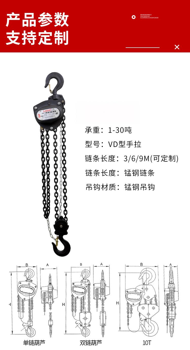 包装清单:1相帮三角形手拉葫芦VD手拉葫芦一吨吊链小型环链倒链手动葫芦起重葫芦微型起重吊机