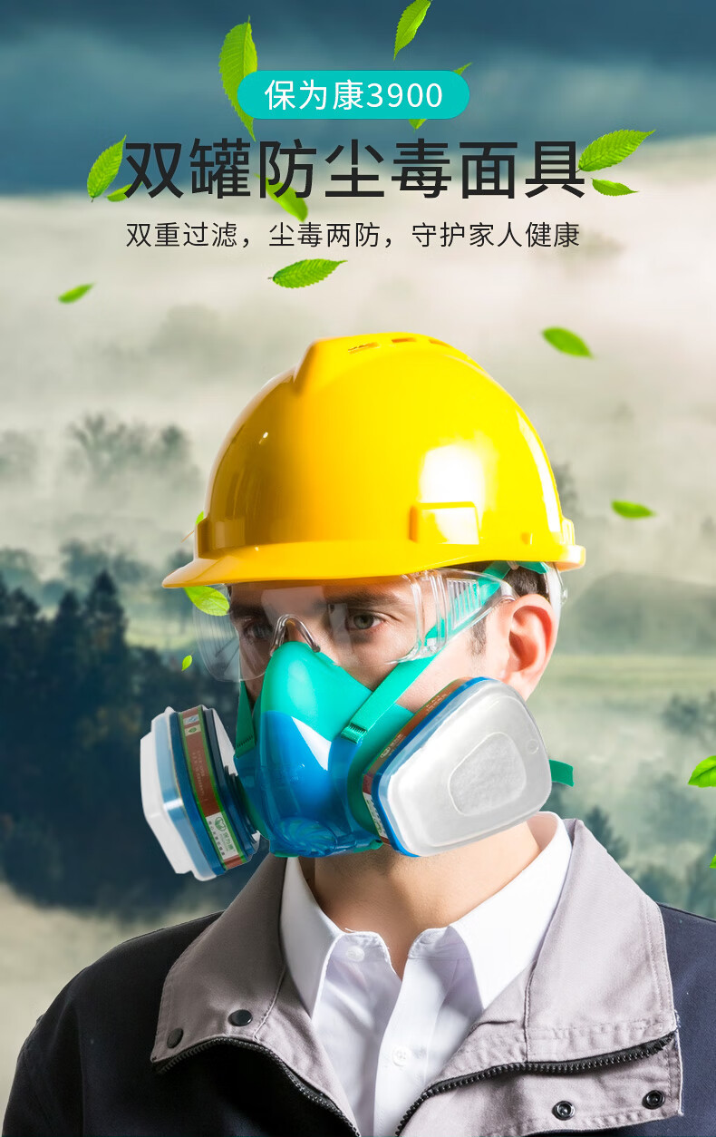 商品名称:保为康3900 硅胶防毒面具 双罐防毒口罩喷漆专用防有毒气体工业防尘打磨装修口罩半面罩