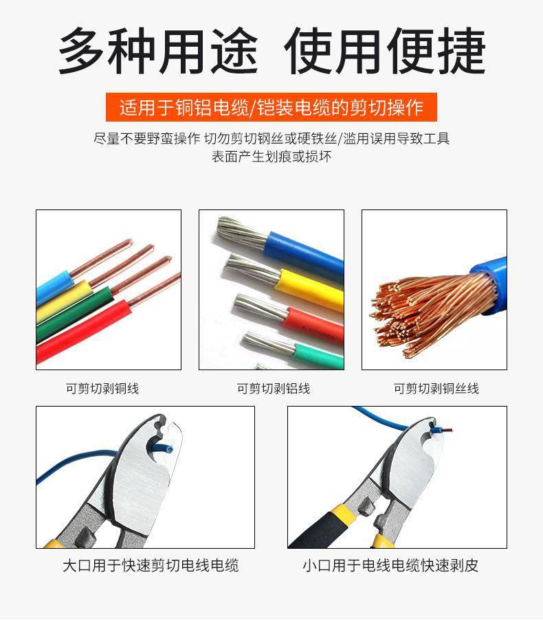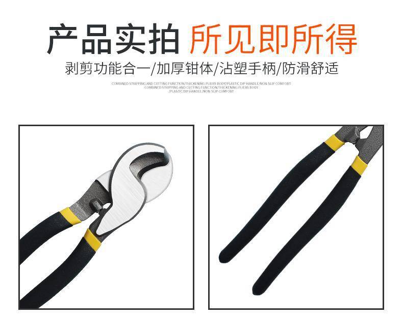 包装清单:1电缆断剪线钳剥钳子电工剪刀快电览多功能绞线工业级月牙6寸8手动
