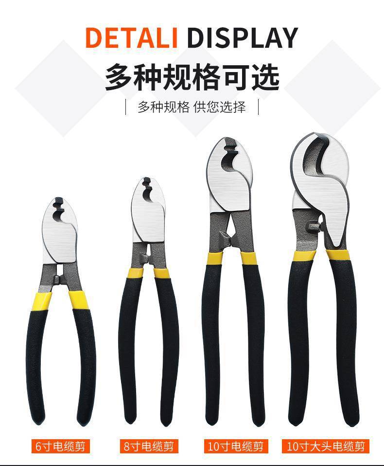商品名称:电缆断剪线钳剥钳子电工剪刀快电览多功能绞线工业级月牙6寸8手动