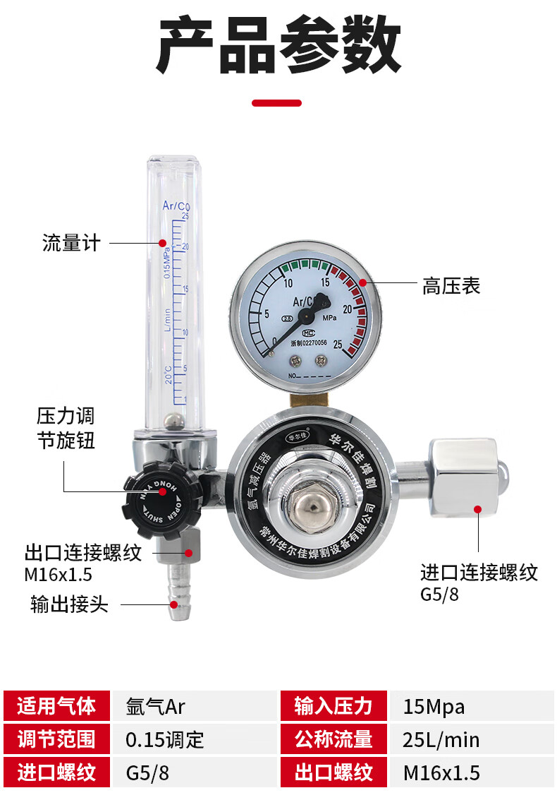 商品名称:氩气表氩弧焊机配件钢瓶减压器压力表气体调压阀调节器