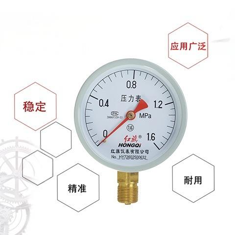 商品名称:红旗牌仪表Y-100精度1.6级径向普通气压表水压表真空负压 压力表