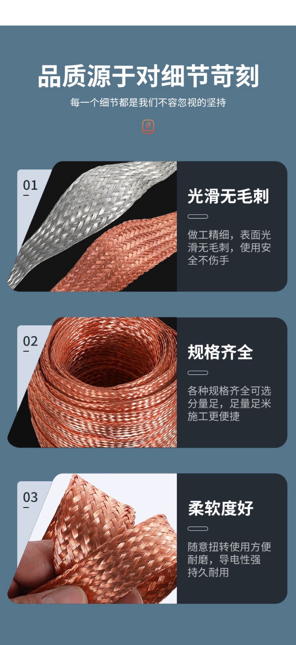 包装清单:16平方法兰跨接线镀锡铜紫铜编织端子线防静电全铜导电桥架接地线