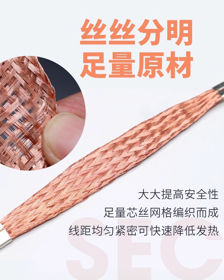 商品名称:6平方法兰跨接线镀锡铜紫铜编织端子线防静电全铜导电桥架接地线