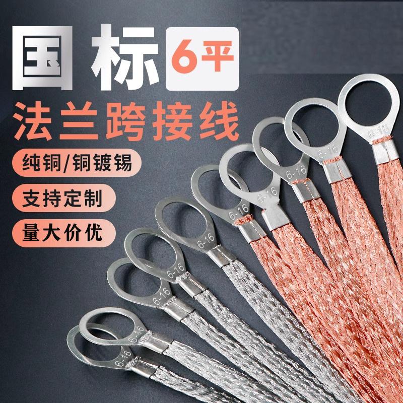 6平方法兰跨接线镀锡铜紫铜编织端子线防静电全铜导电桥架接地线