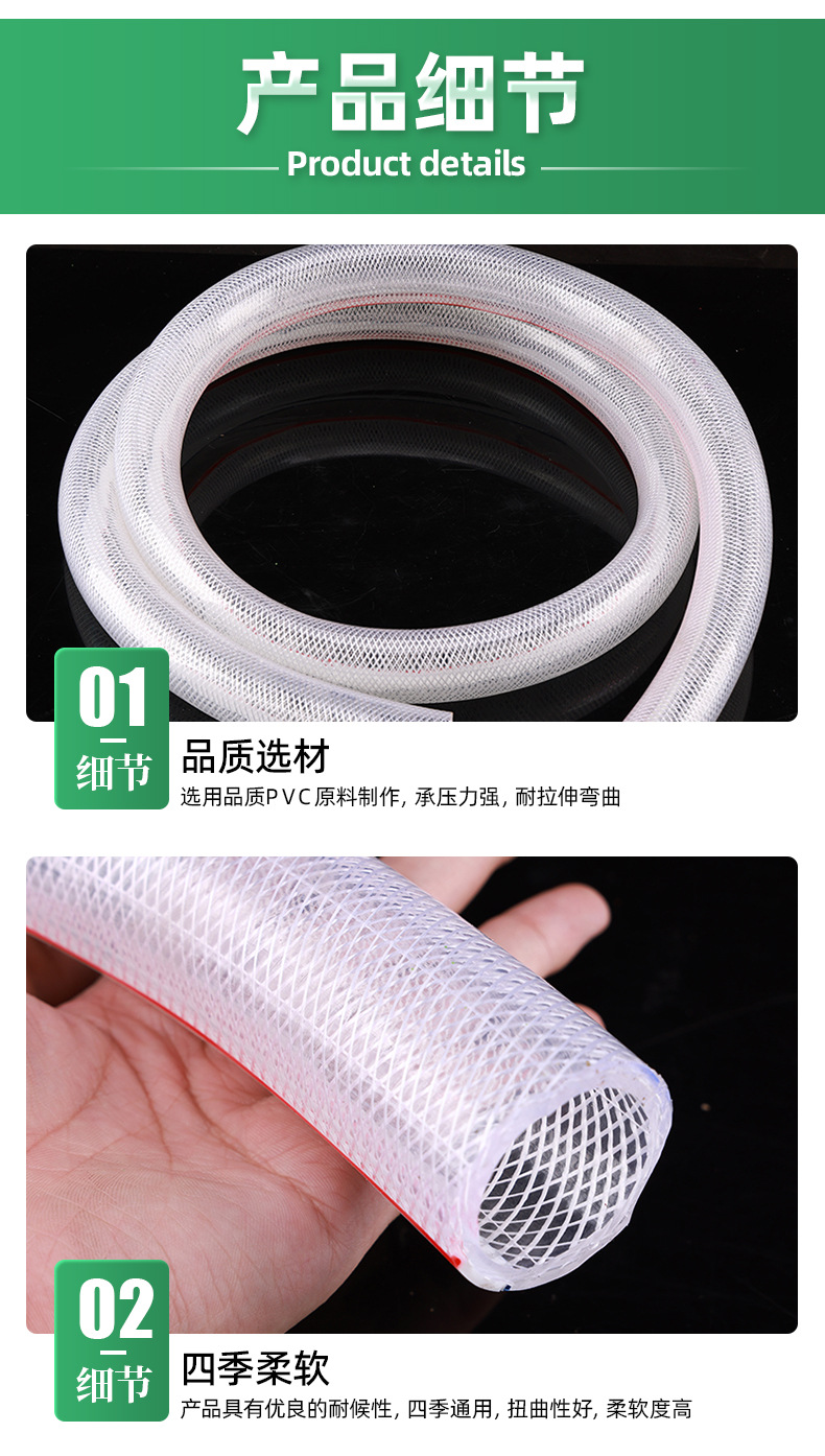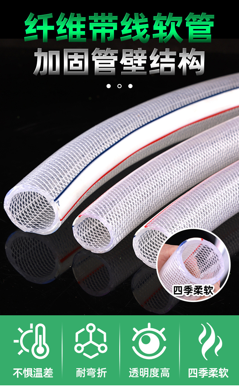 包装清单:1合恒工品PVC增强纤维软管带线洗车水管花园菜地输水管 透明四季软管PVC管