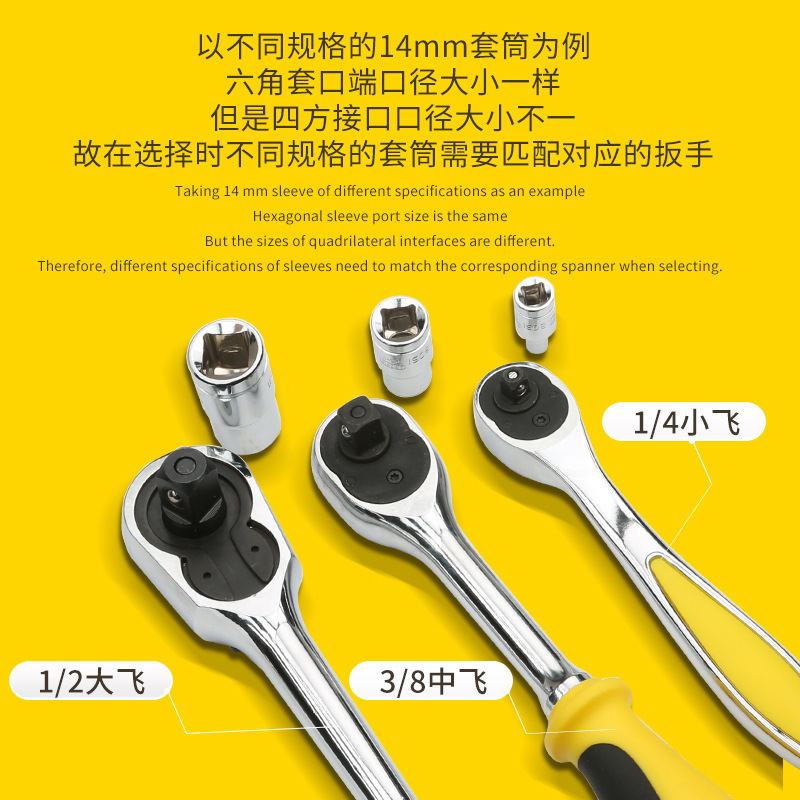 72齿弯柄大中小快速棘轮扳手套筒板手汽修工具大飞中飞小飞扳子
