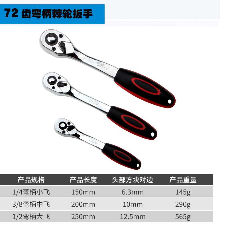 商品名称:72齿弯柄大中小快速棘轮扳手套筒板手汽修工具大飞中飞小飞扳子