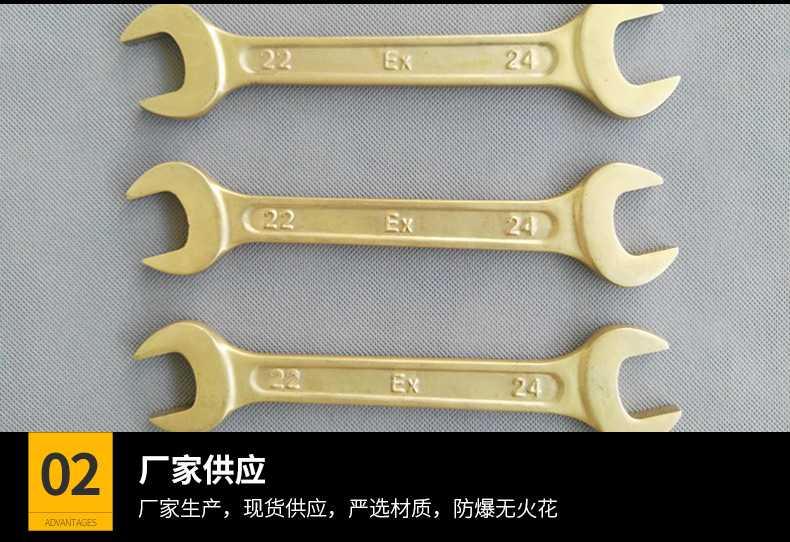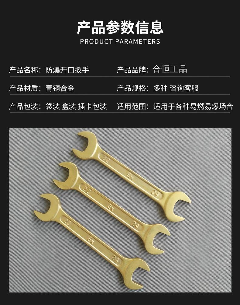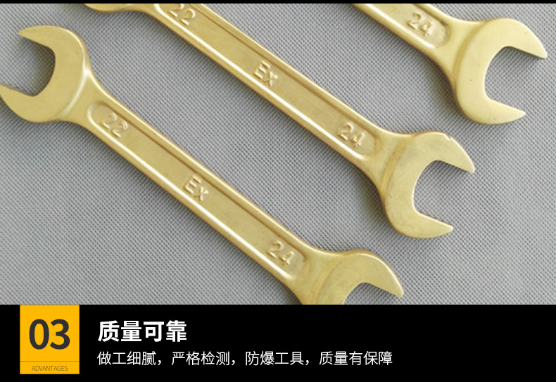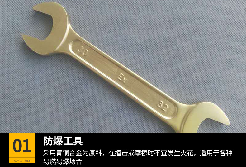 包装清单:1防爆开口扳手 铝青铜铍青铜双呆扳手 无火花开口防爆防磁工具扳子