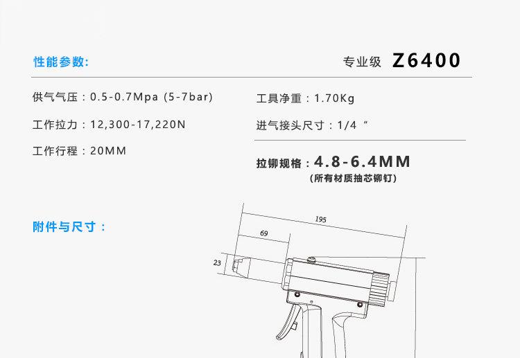 包装清单:1气动铆钉枪拉钉枪拉钉铆枪Z5000A6400不锈钢液压抽芯铆钉机