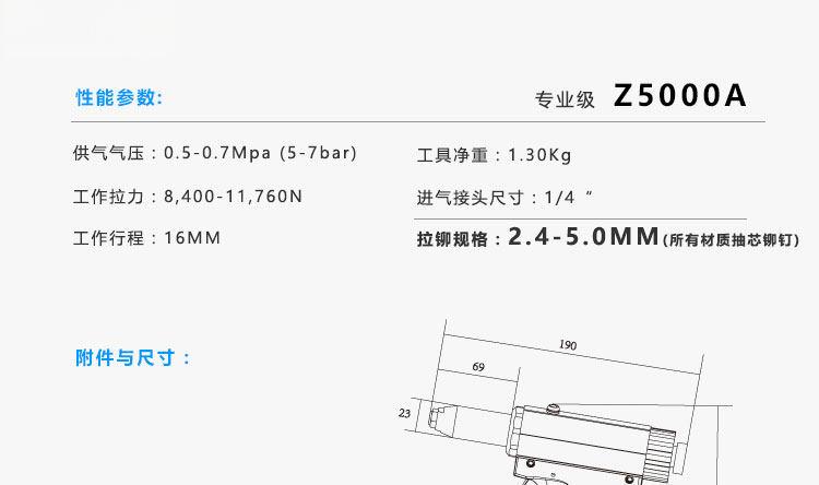 商品名称:气动铆钉枪拉钉枪拉钉铆枪Z5000A6400不锈钢液压抽芯铆钉机