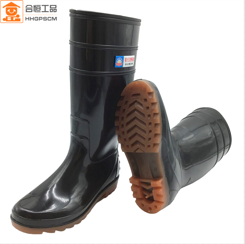 野战靴 耐酸 耐油 防水鞋 男劳保雨鞋 胶鞋 防滑黑色款