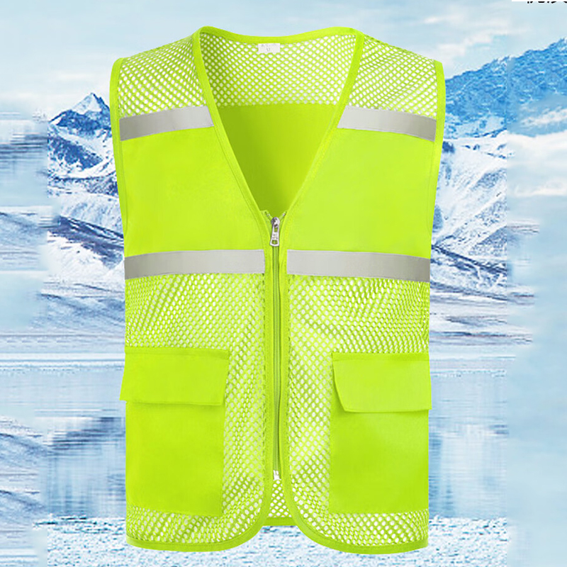 针织布拉链款双肩双腰反光马甲 网格布反光背心 均码