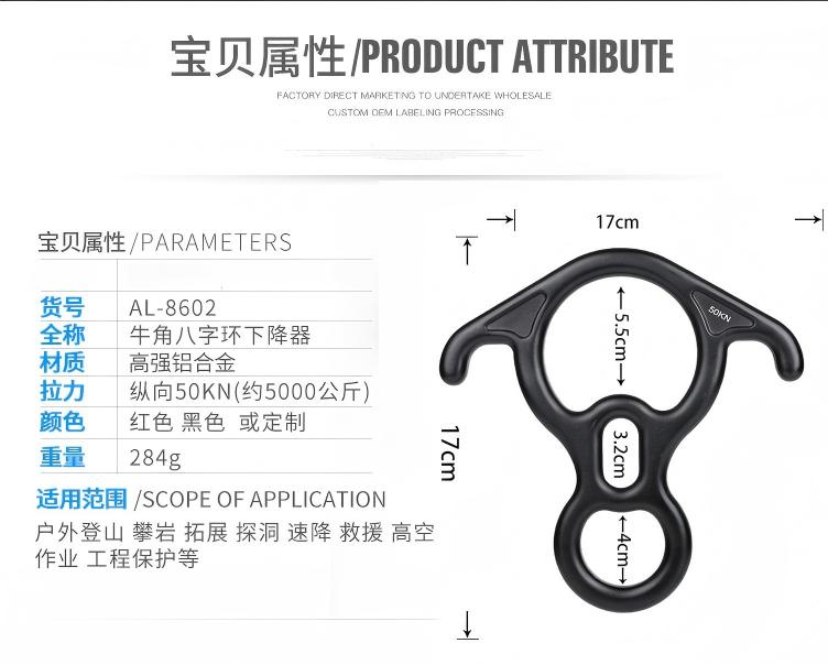 商品名称:牛角8字环高空缓降器八字环速降器下降器登山攀岩装备