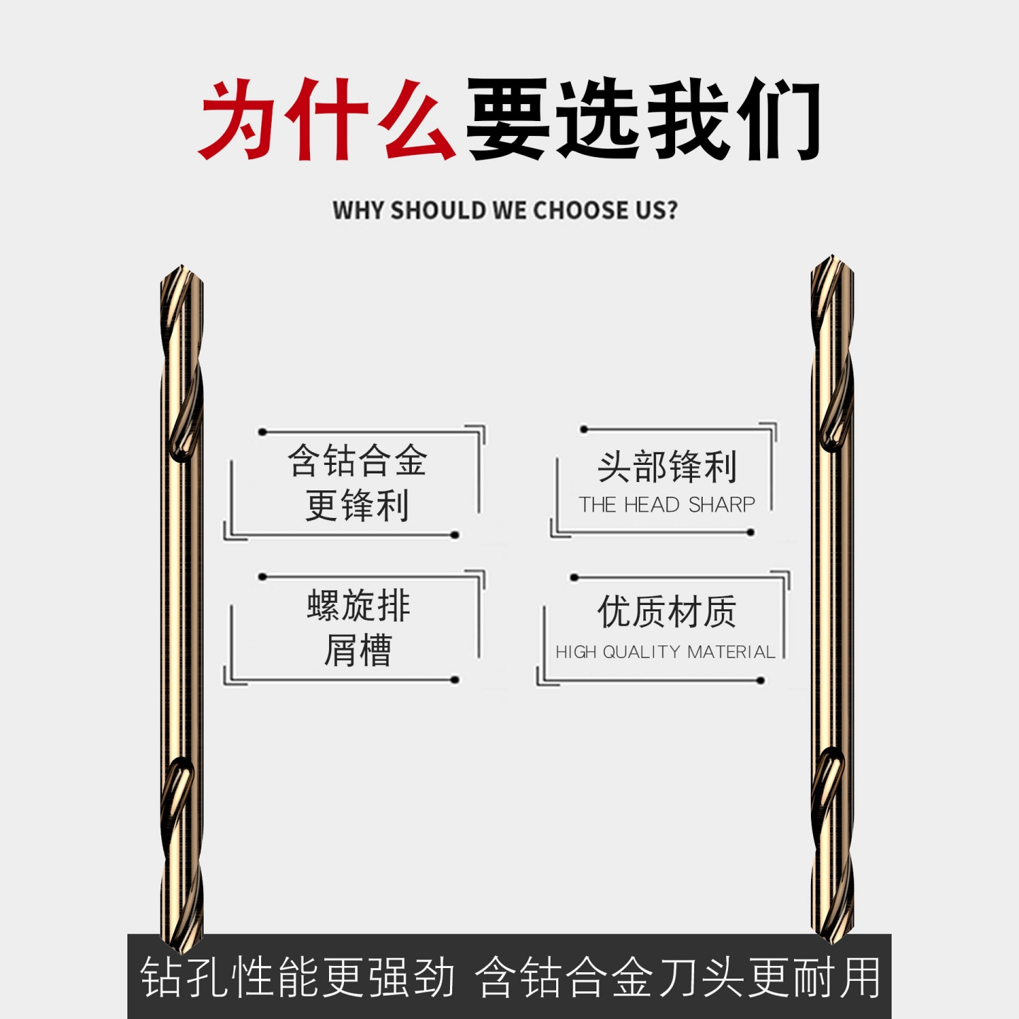 商品名称:含钴高速钢双头麻花钻头大全双刃不锈钢专用超硬钻铁打孔转头