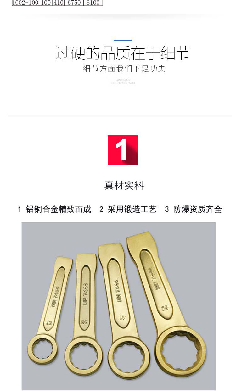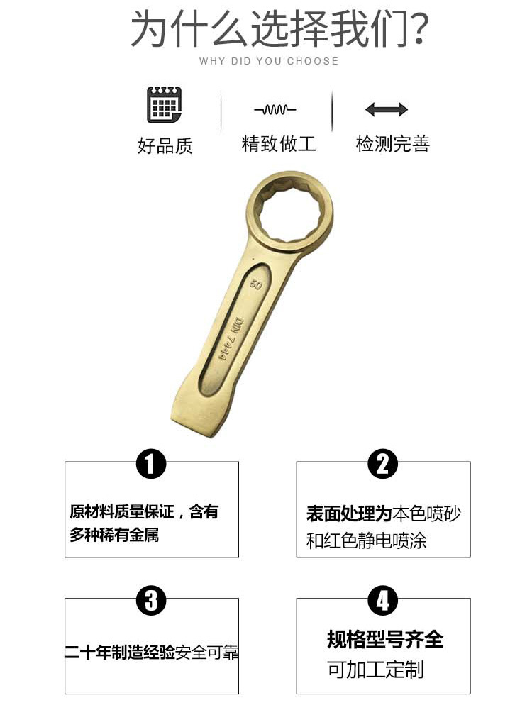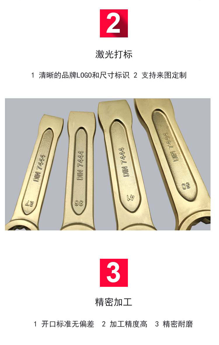 包装清单:1渤防牌1002德式敲击梅花扳手防爆铝青铜合金敲击扳手锻压红色扳手