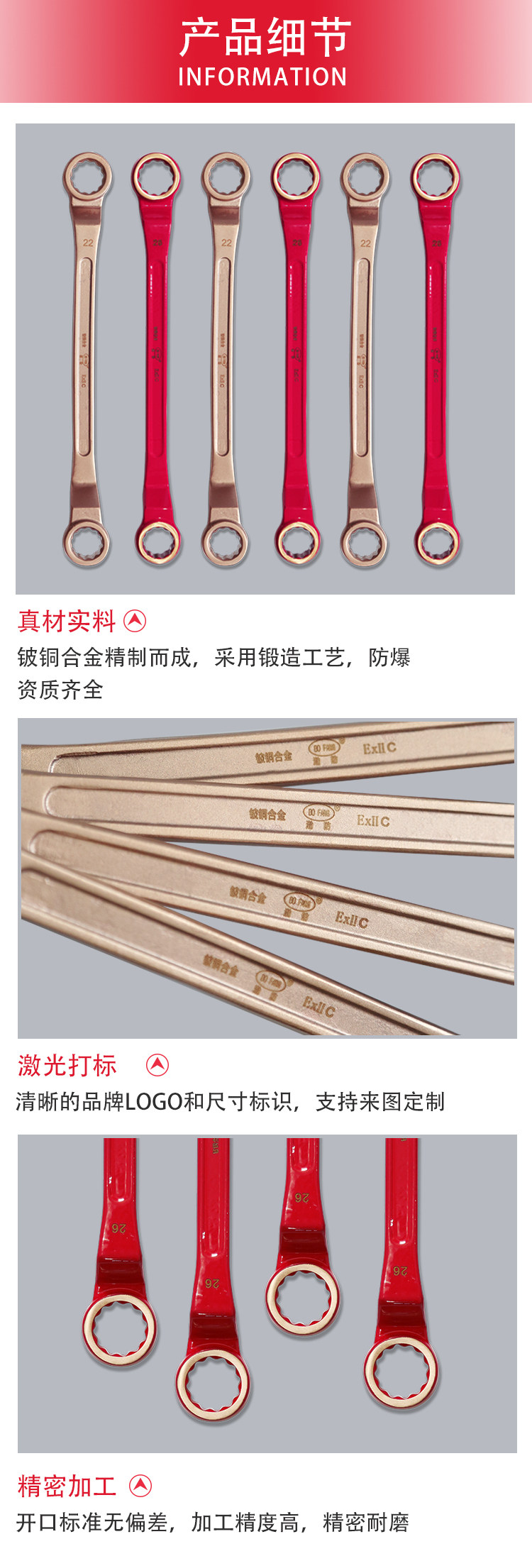包装清单:1渤防防爆双头梅花扳手 5.5-70mm铝铜眼镜扳手 铍铜套装梅花扳手