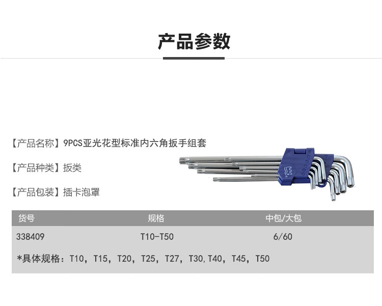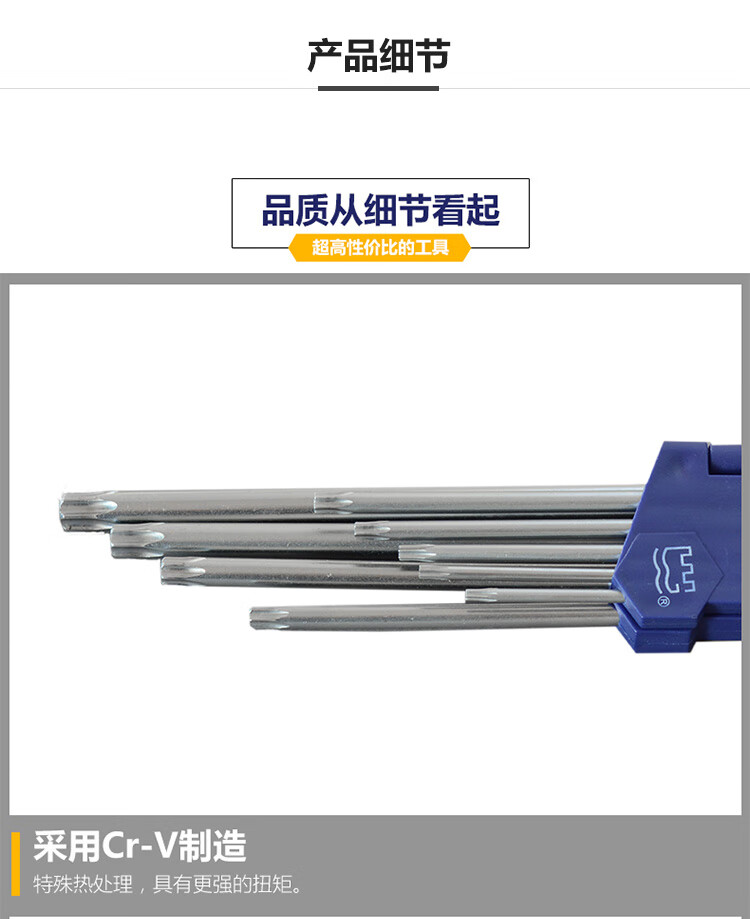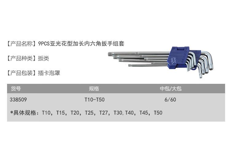 包装清单:1长城精工内六角扳手套装梅花内五花6角组套花型六角加长特长9件套 梅花内六角套装9件标准