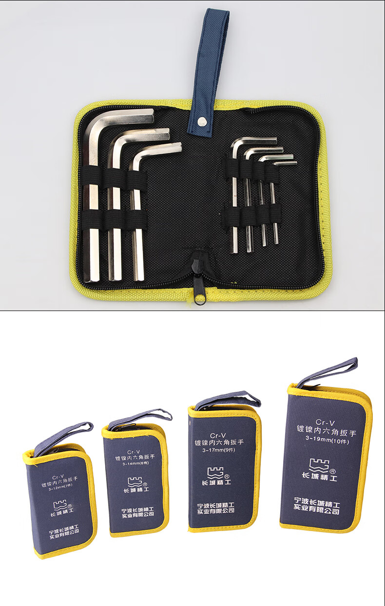 包装清单:1长城精工内六角扳手六角六棱螺丝刀牛津布内六方扳手工具组套3-19mm