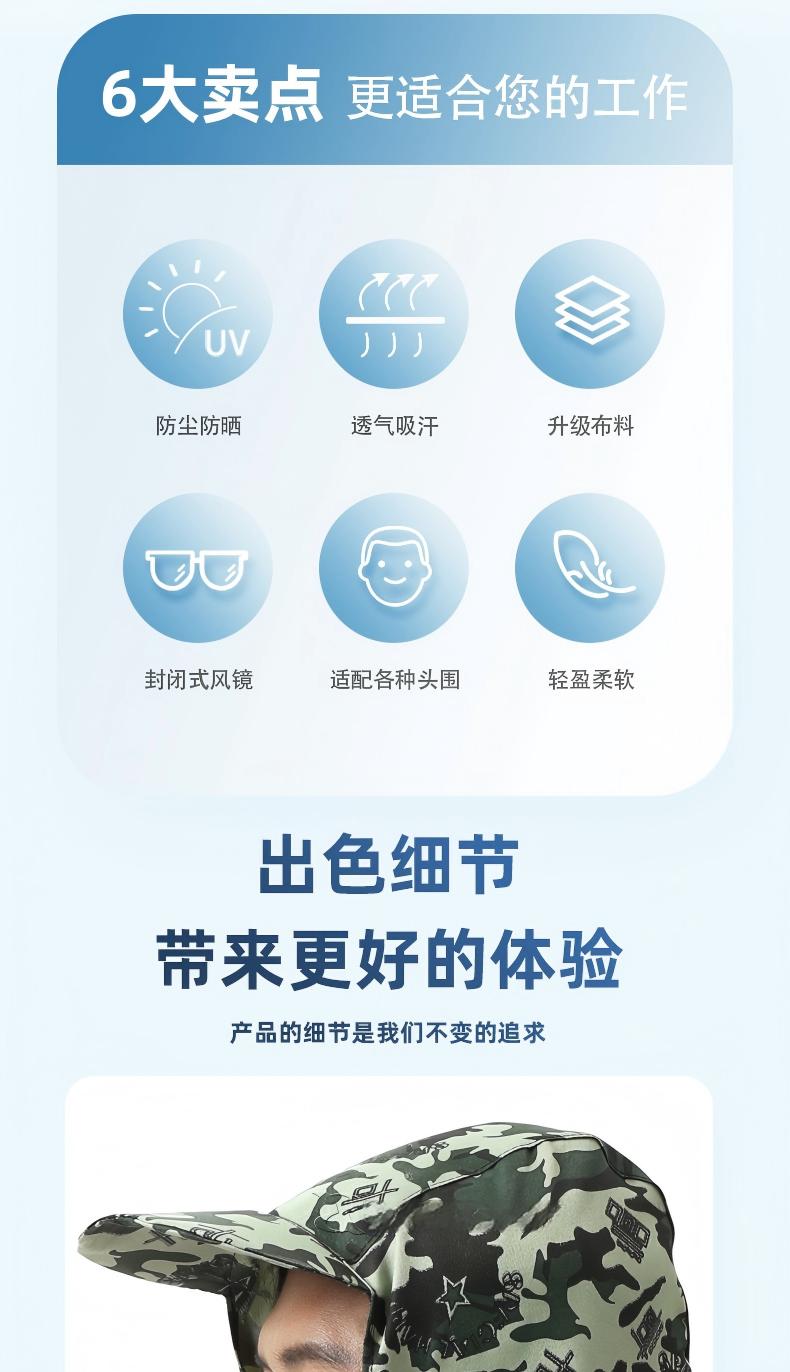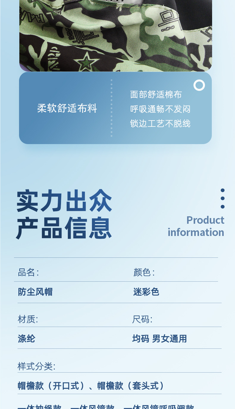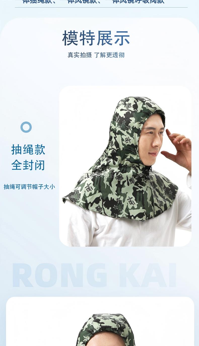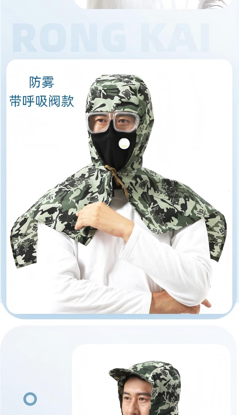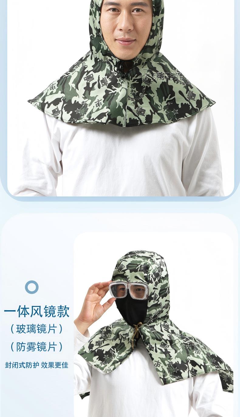 包装清单:1透气迷彩布防尘风帽装卸搬运工男女加厚耐磨耐脏牛仔布披肩帽