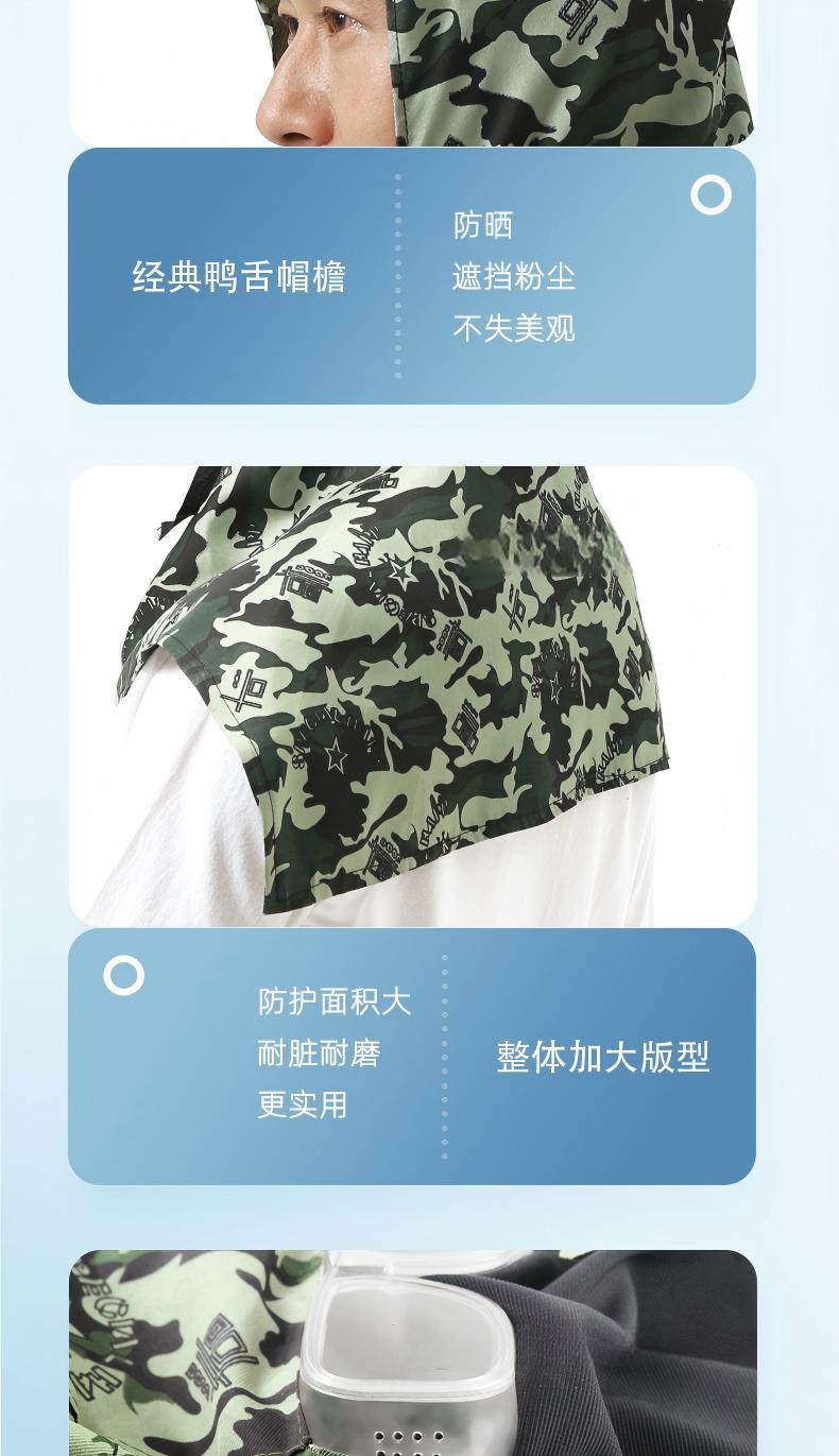 商品名称:透气迷彩布防尘风帽装卸搬运工男女加厚耐磨耐脏牛仔布披肩帽