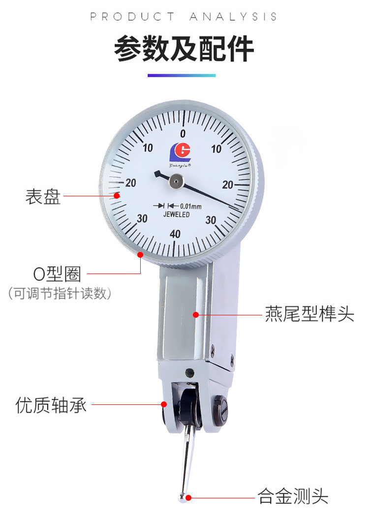 包装清单:1杠杆百分表0-0.8mm小校表防震指示表杠杆千分表0-0.2mm