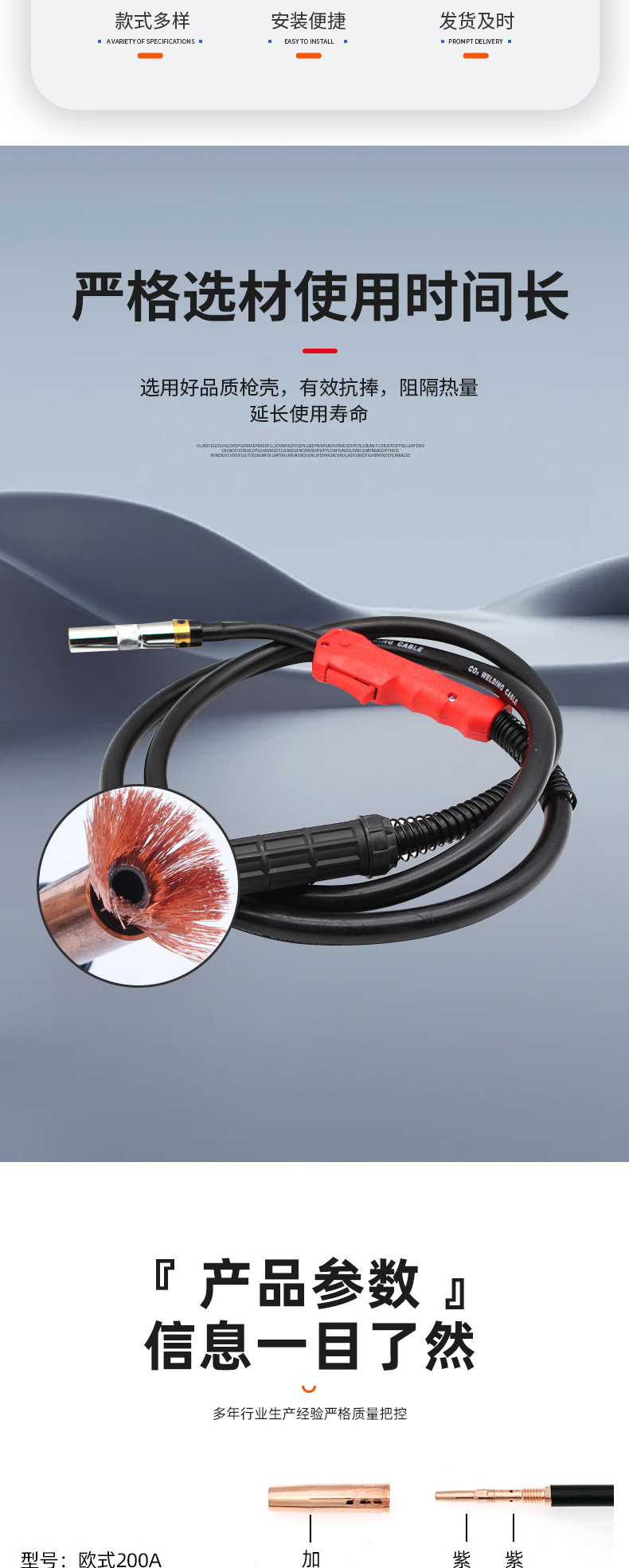 商品名称:二保焊枪200A350A500A欧式二氧化碳气体保护焊枪焊机配件加长焊枪