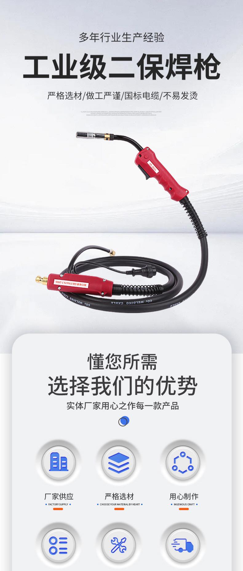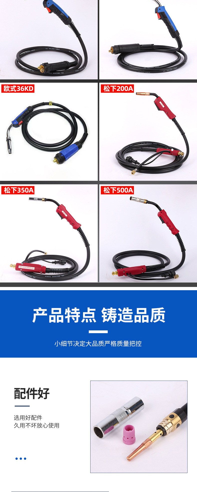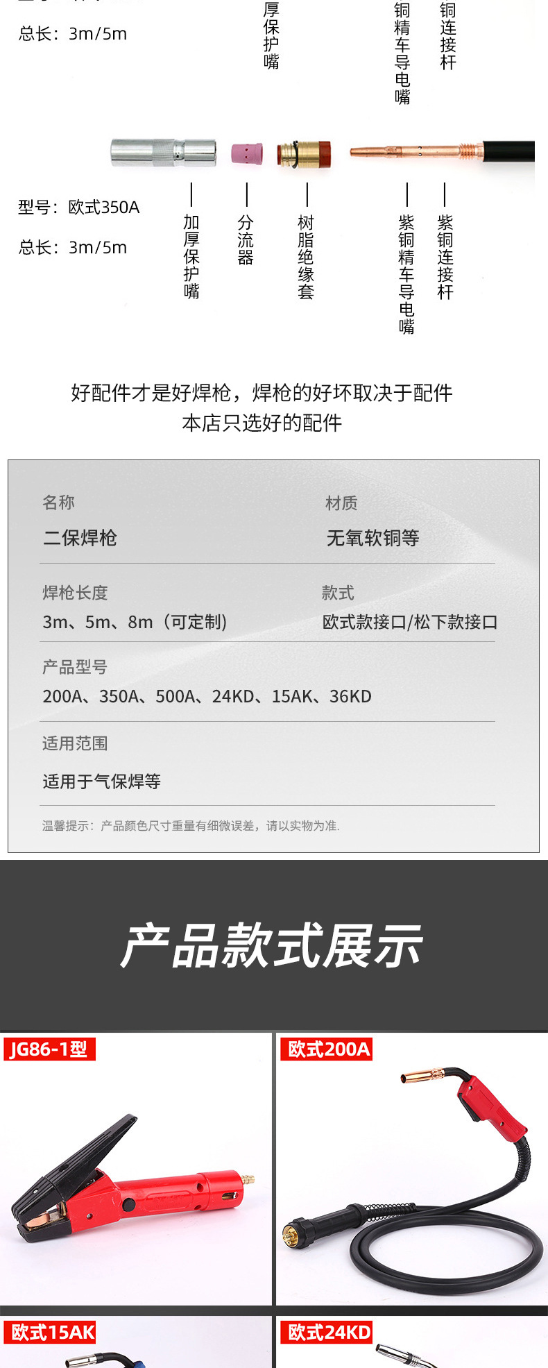 包装清单:1二保焊枪200A350A500A欧式二氧化碳气体保护焊枪焊机配件加长焊枪