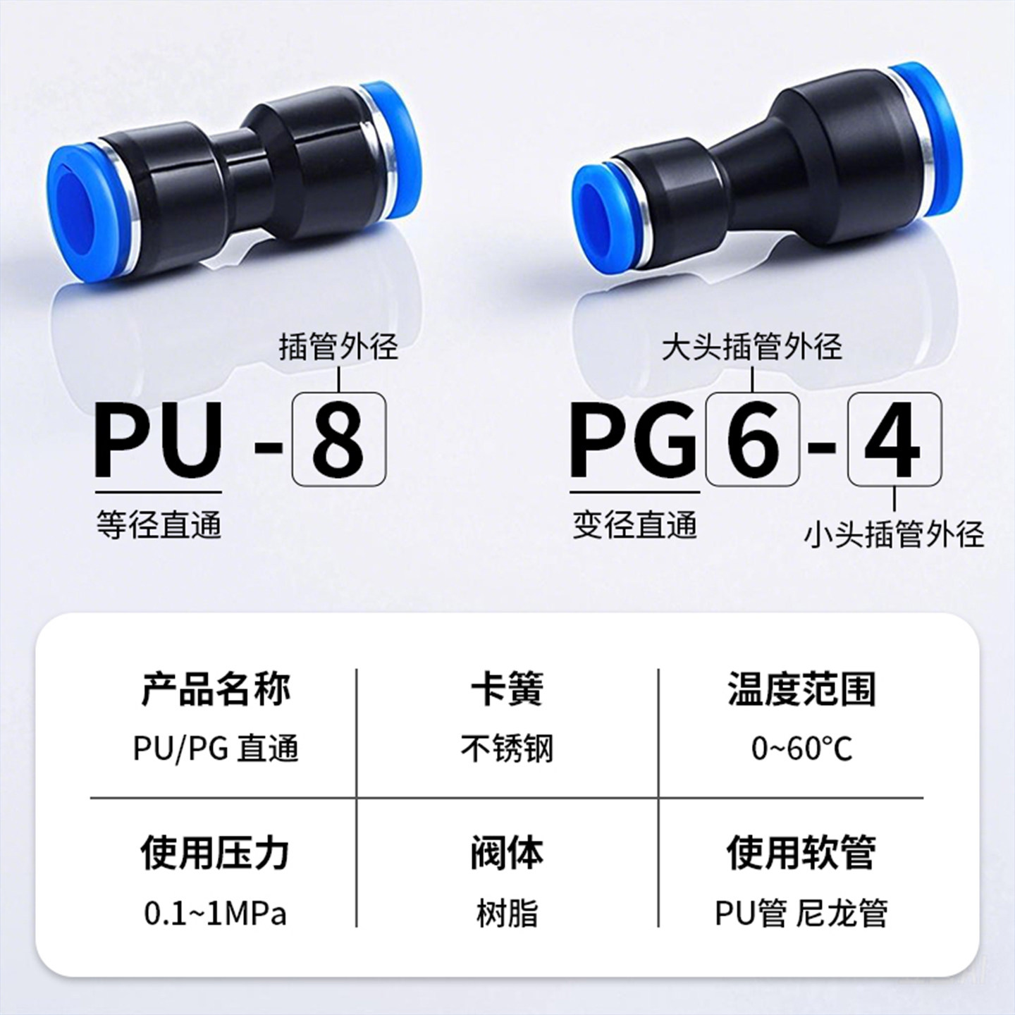 变径直通气管快速接头PU直通PGPEG变径PY螺纹快插高压468mm气动三通