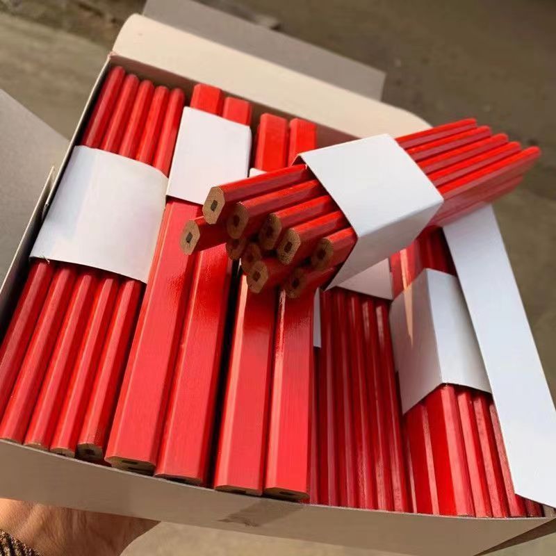 合恒工品木工铅笔工地 专用划线工专扁头笔木黑色八角红色方形画线高颜值