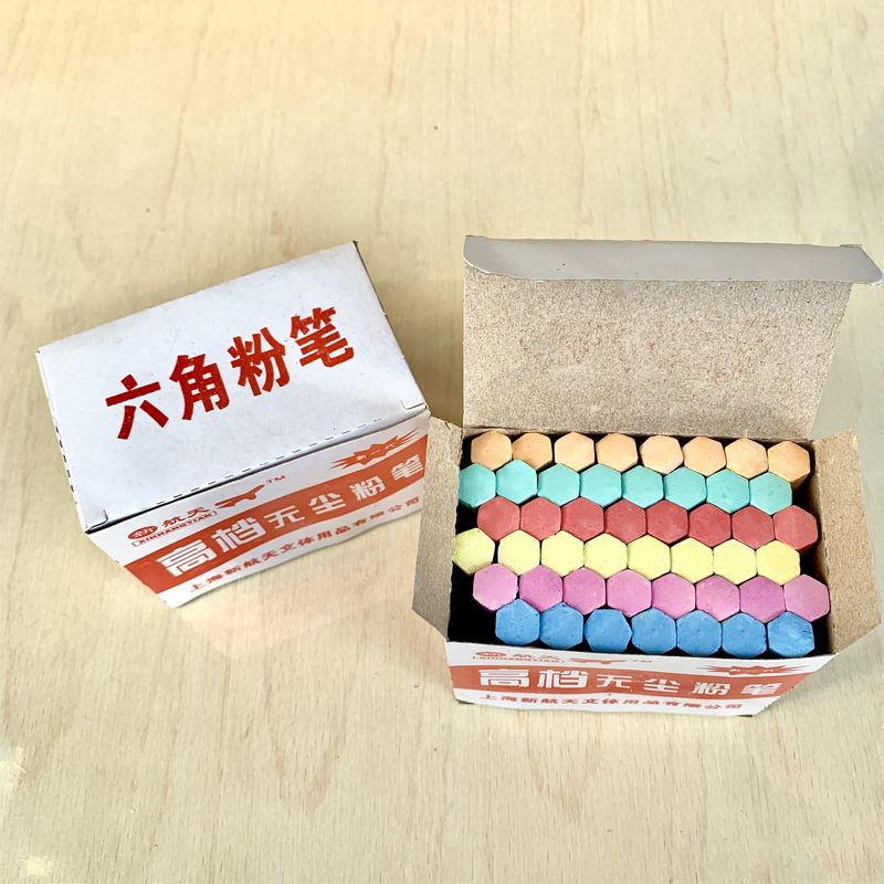 新航天无尘六角粉笔教学用品48支装儿童涂鸦可擦白色彩色无尘粉笔