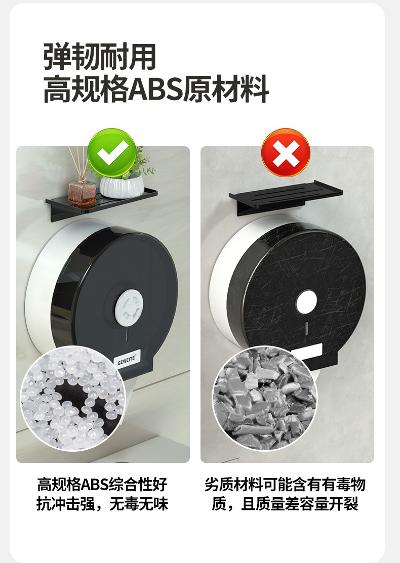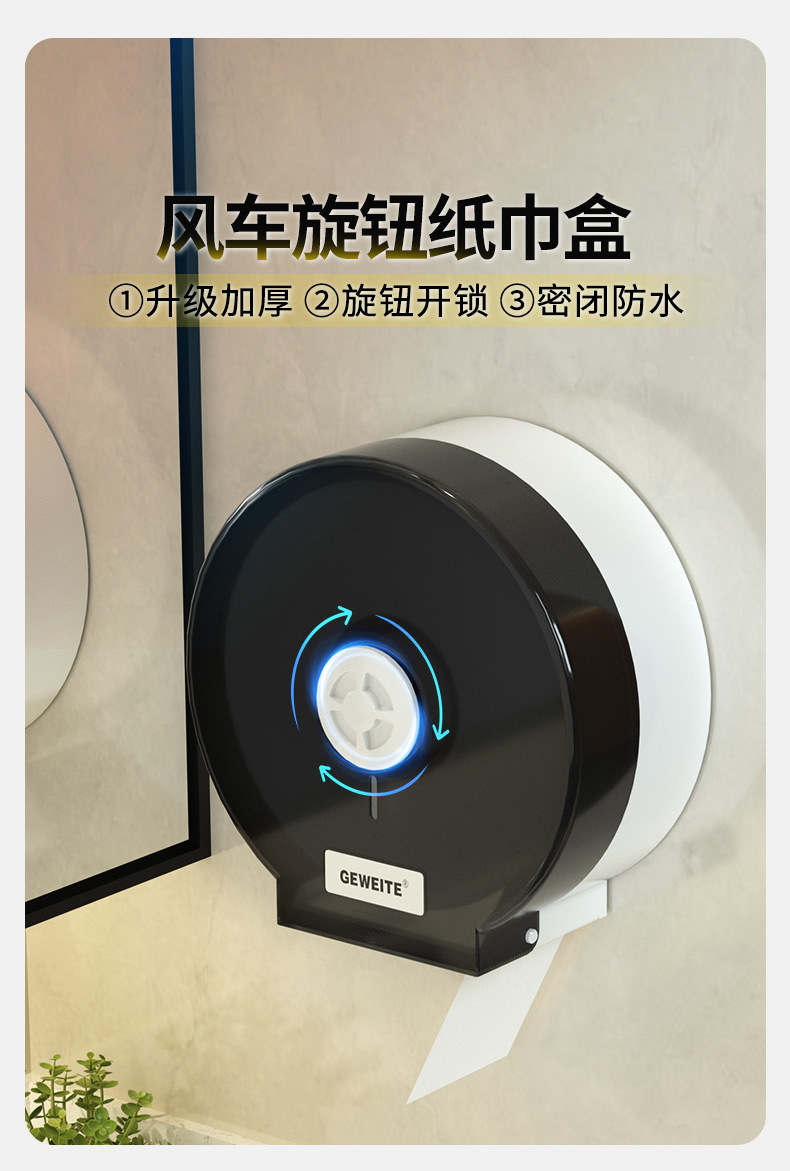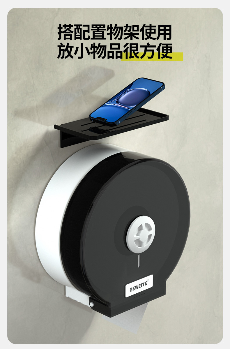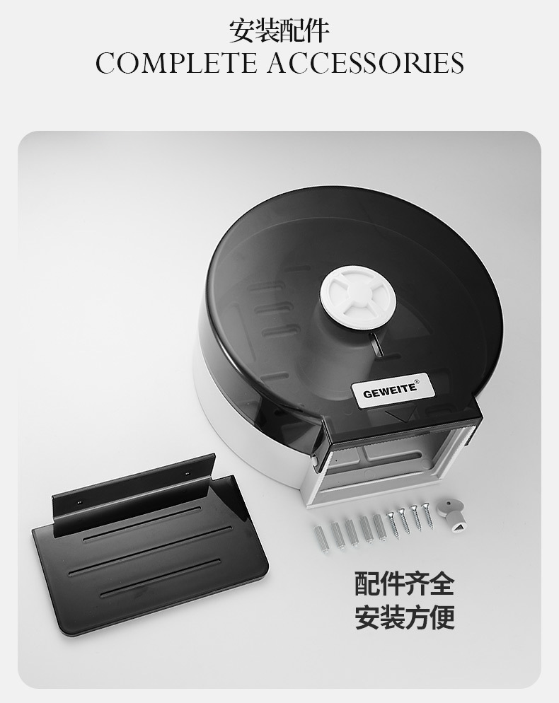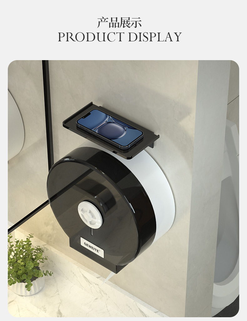 包装清单:1卫生间大卷纸盒壁挂式厕所大盘卷纸盒卫生间抽纸盒酒店擦手纸巾盒