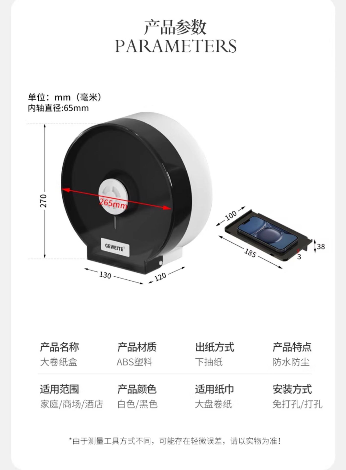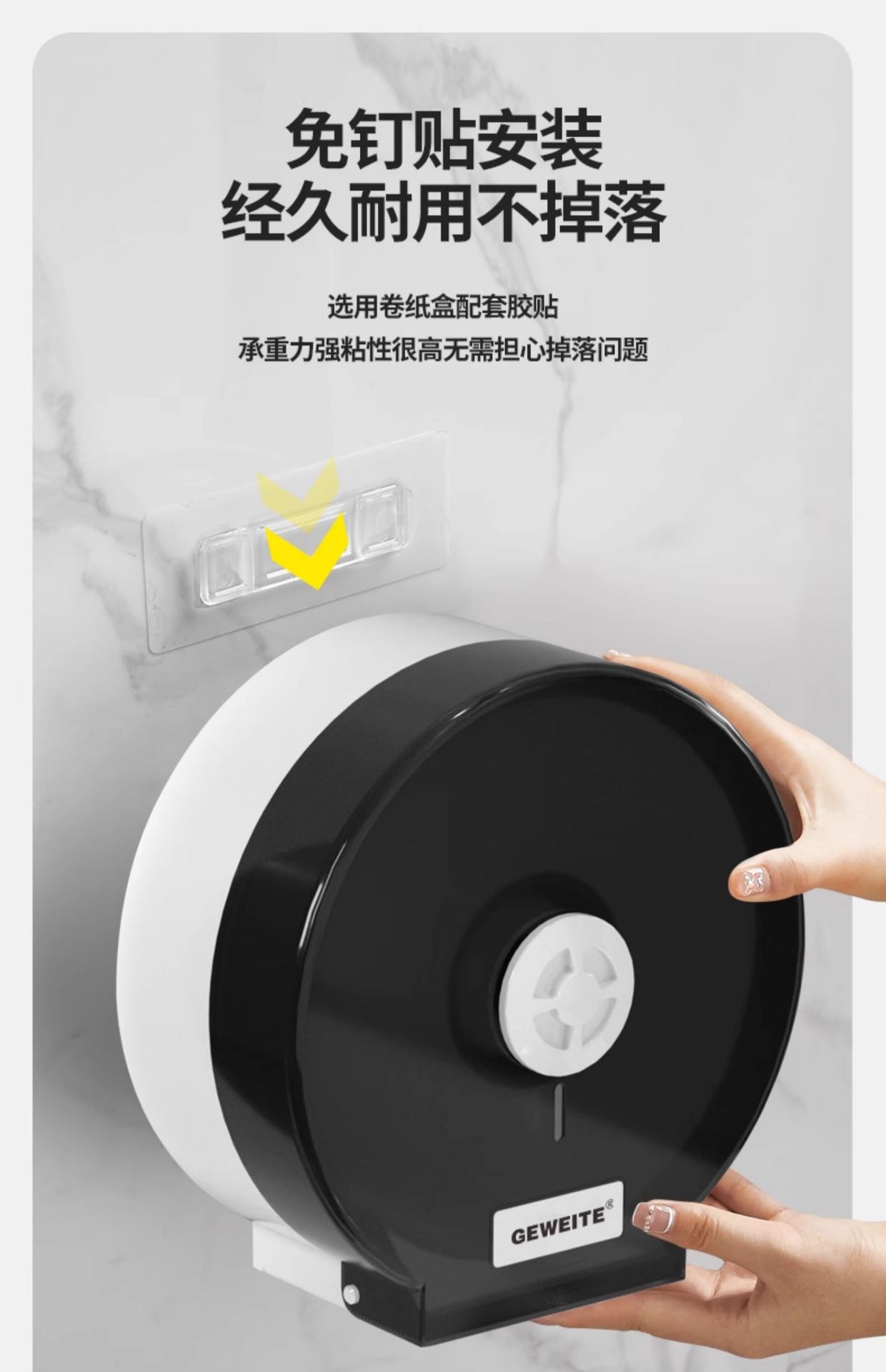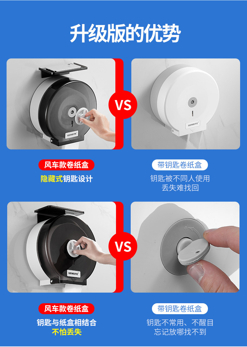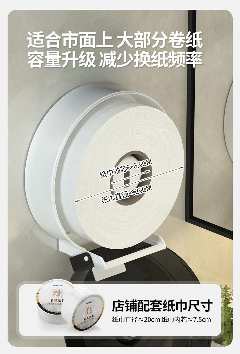 包装清单:1卫生间大卷纸盒壁挂式厕所大盘卷纸盒卫生间抽纸盒酒店擦手纸巾盒