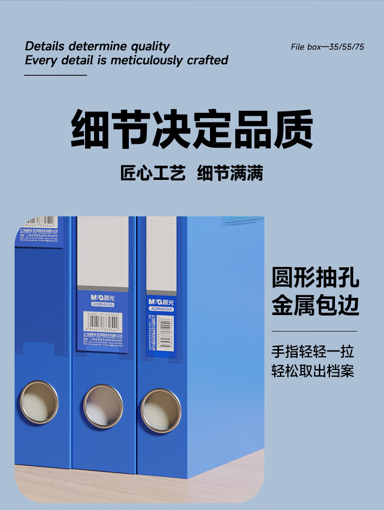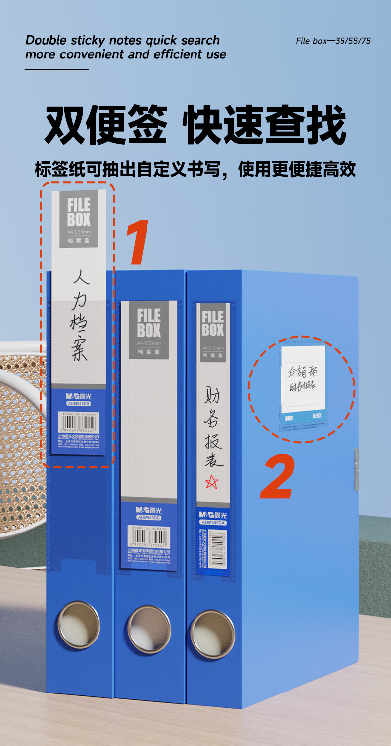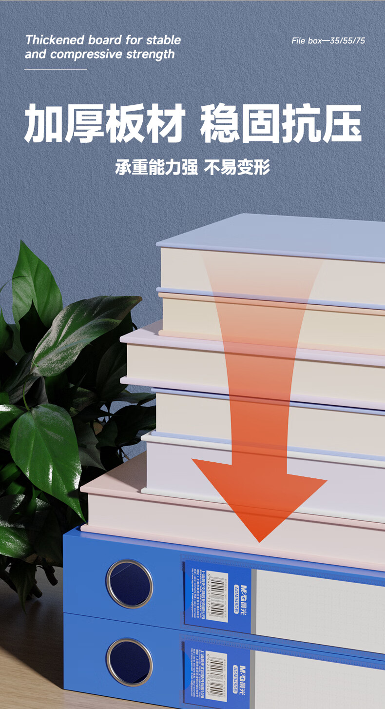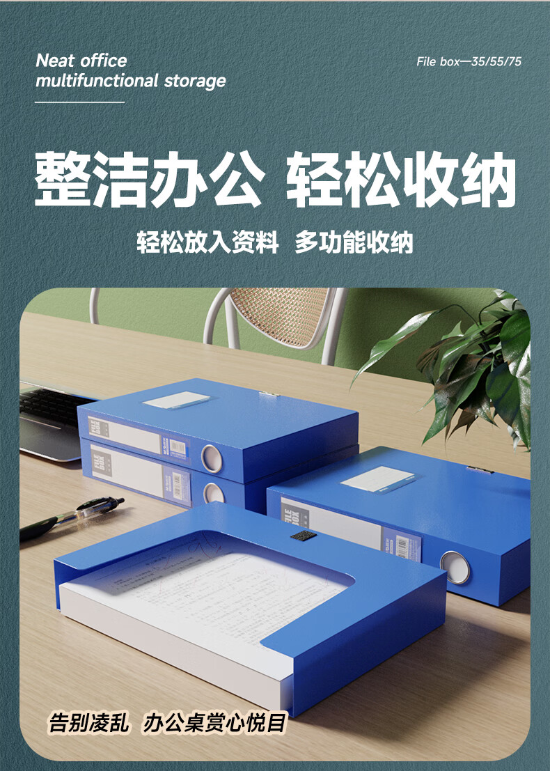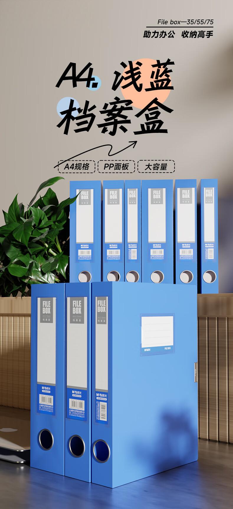 包装清单:1文具 10只35mmA4加厚粘扣文件盒档案盒资料盒凭证文件收纳盒办公财会用品ADM945DA
