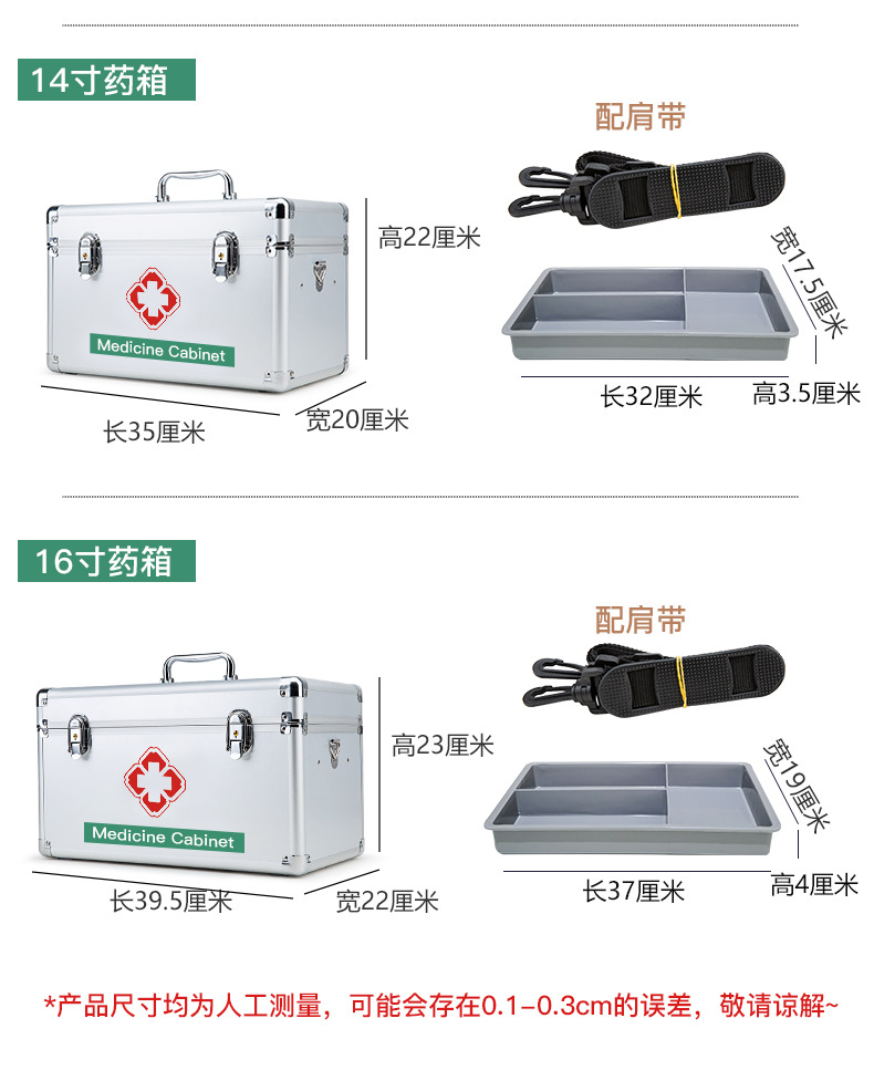 包装清单:1家用药箱医药箱铝合金药箱急救箱出诊箱紧急医疗救助箱便民箱药盒