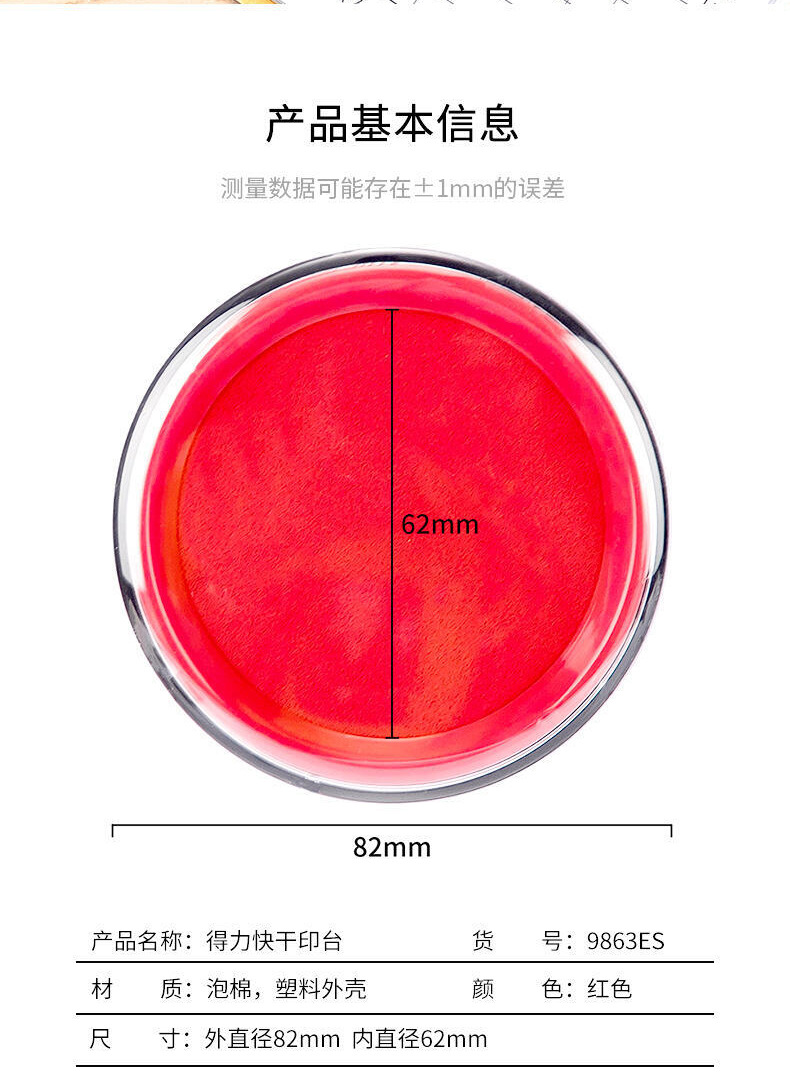 包装清单:1津玉圆形印台红色82*82 内径62印泥清晰印记财务用品红色办公盖章