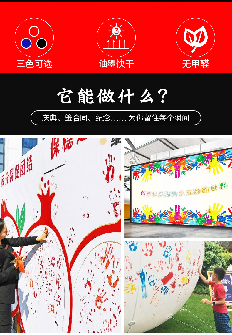 包装清单:1千百代金属外壳特大号印台手掌印脚印加大印泥方形超大号手掌画印泥印大印章红蓝黑空白 活动庆典
