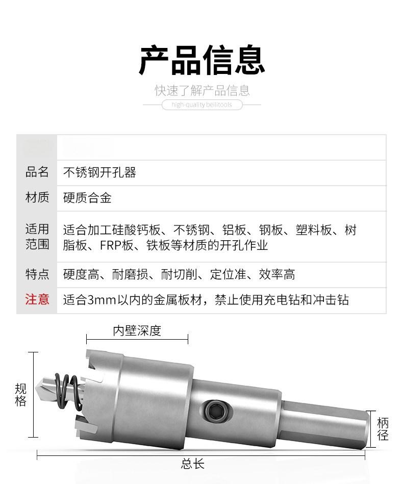 商品名称:合金开孔器空调专用电钻打孔钻头金属开口不锈钢高速钢扩孔器硬质