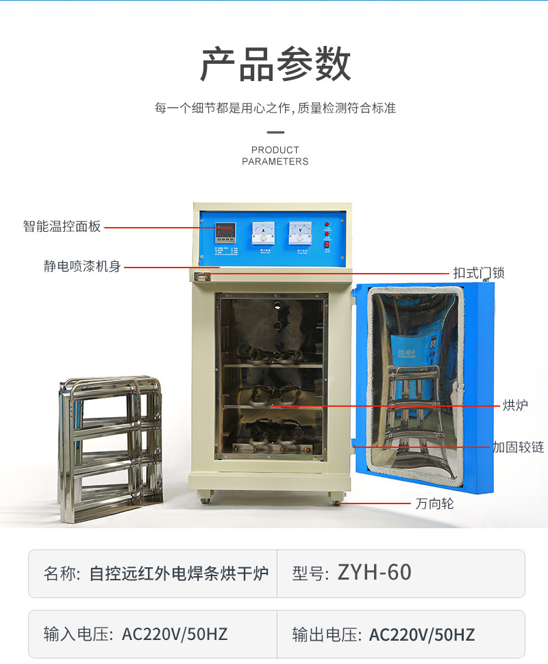 包装清单:1ZYH-60自控远红外电焊条烘箱ZYH-60焊条烘干炉