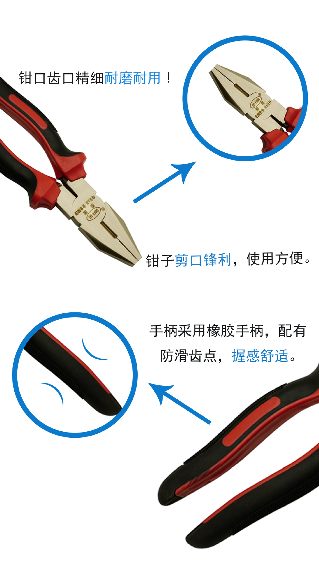 包装清单:1渤防牌防爆克丝钳6寸7寸8寸10寸铝铜合金手钳子防爆老虎钳
