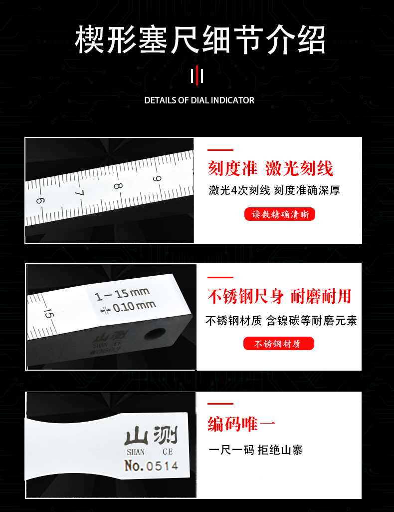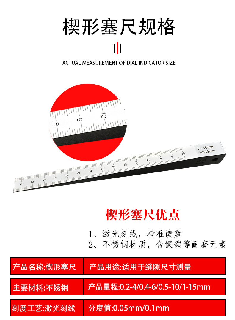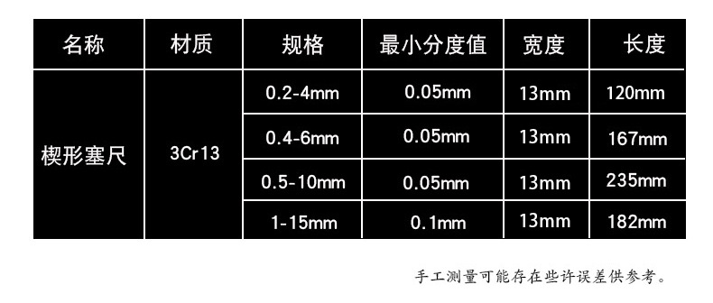 商品名称:楔形塞尺缝隙间隙测量游标斜面 0.2-4 0.4-6 0.5-10 1-15mm