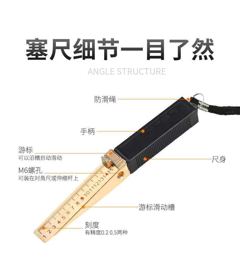 商品名称:楔形游标塞尺缝隙尺高精度间隙尺塞规0-15mm锥形塞尺验房工具