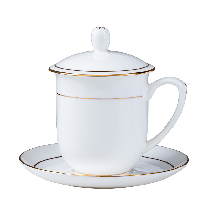 陶瓷杯 带盖办公杯会议杯碟 骨瓷茶杯子陶瓷礼品