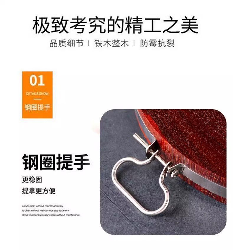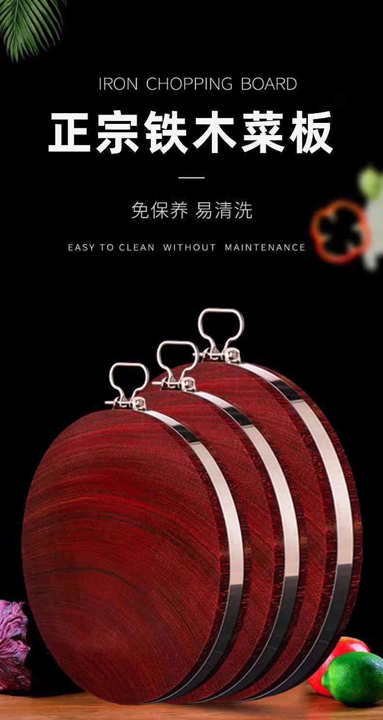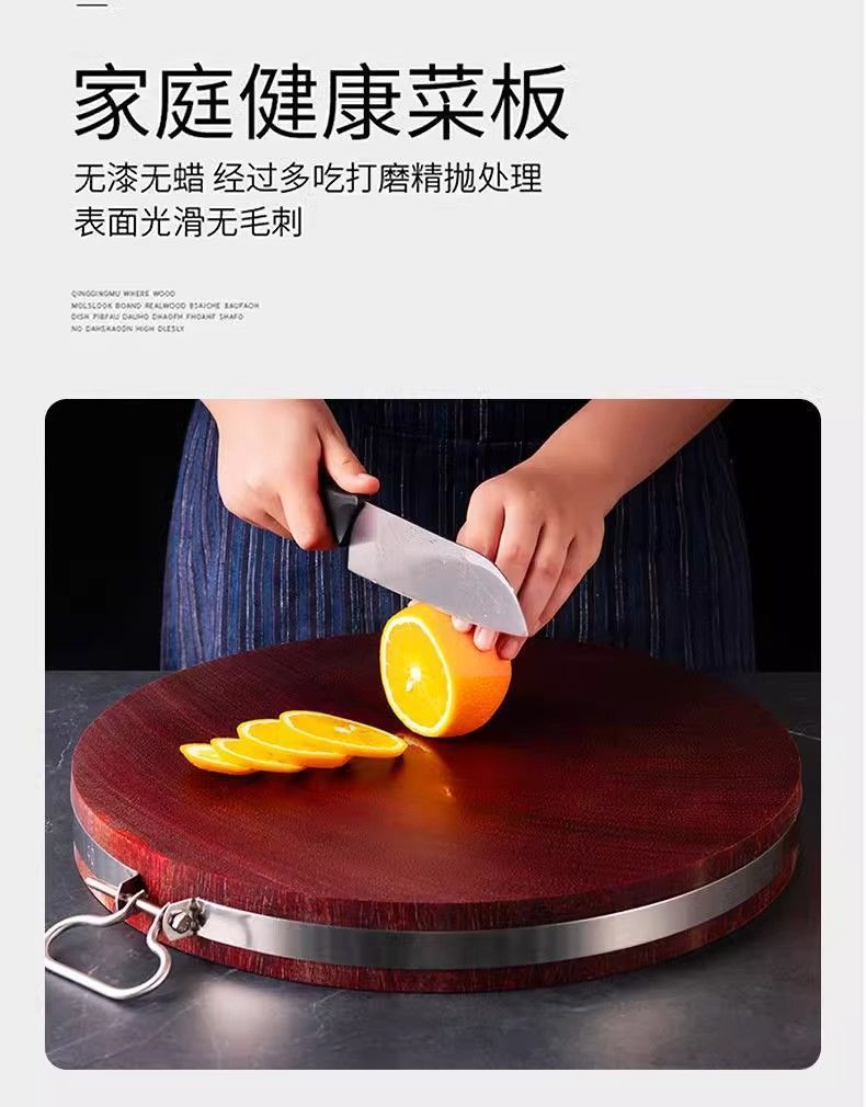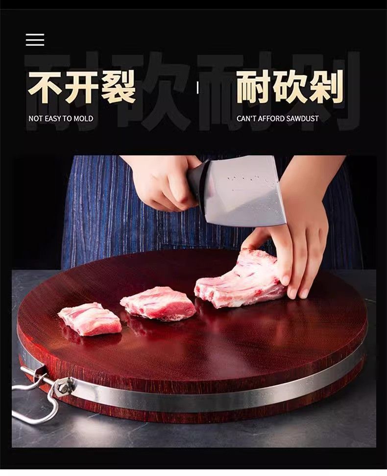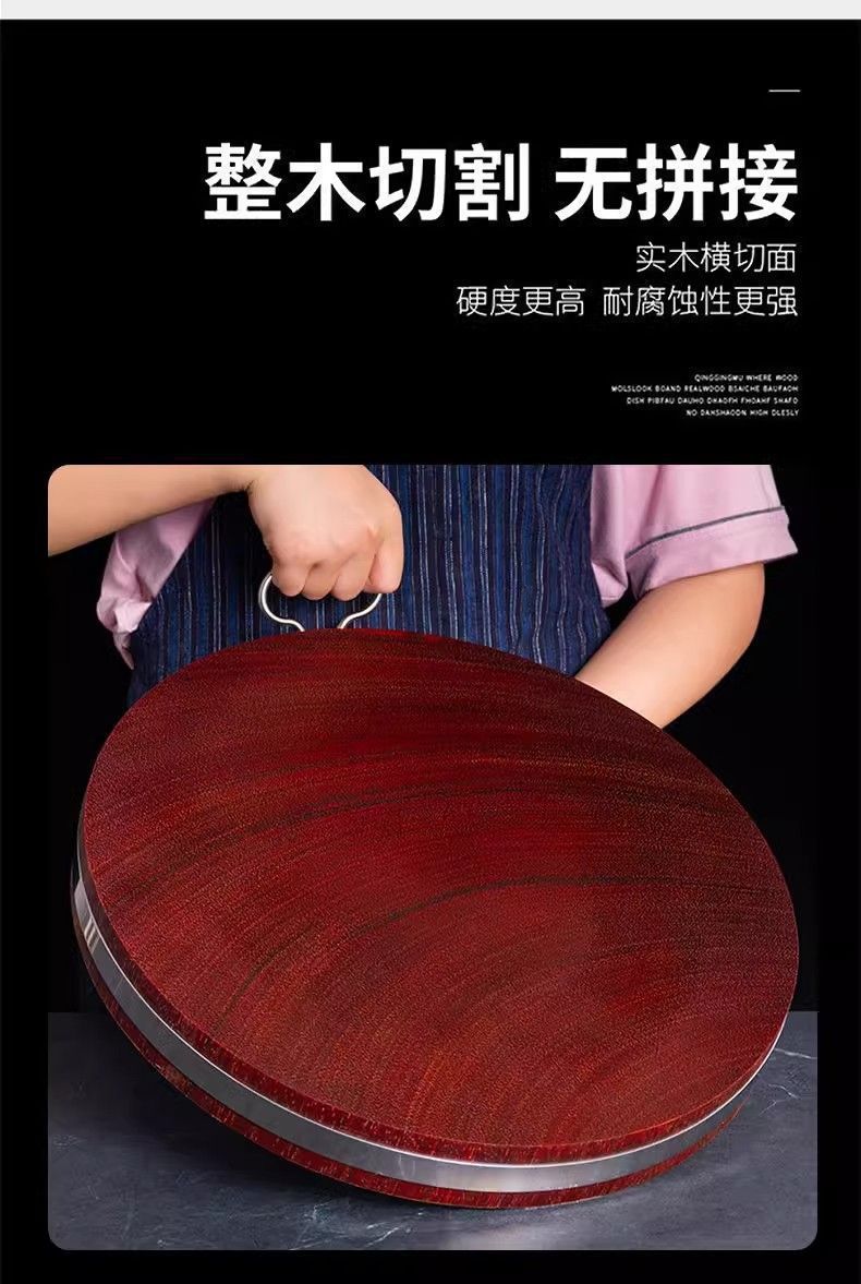 商品名称:铁木砧板木菜板防霉加厚菜墩圆形实正宗刀粘板家用切菜板厨房