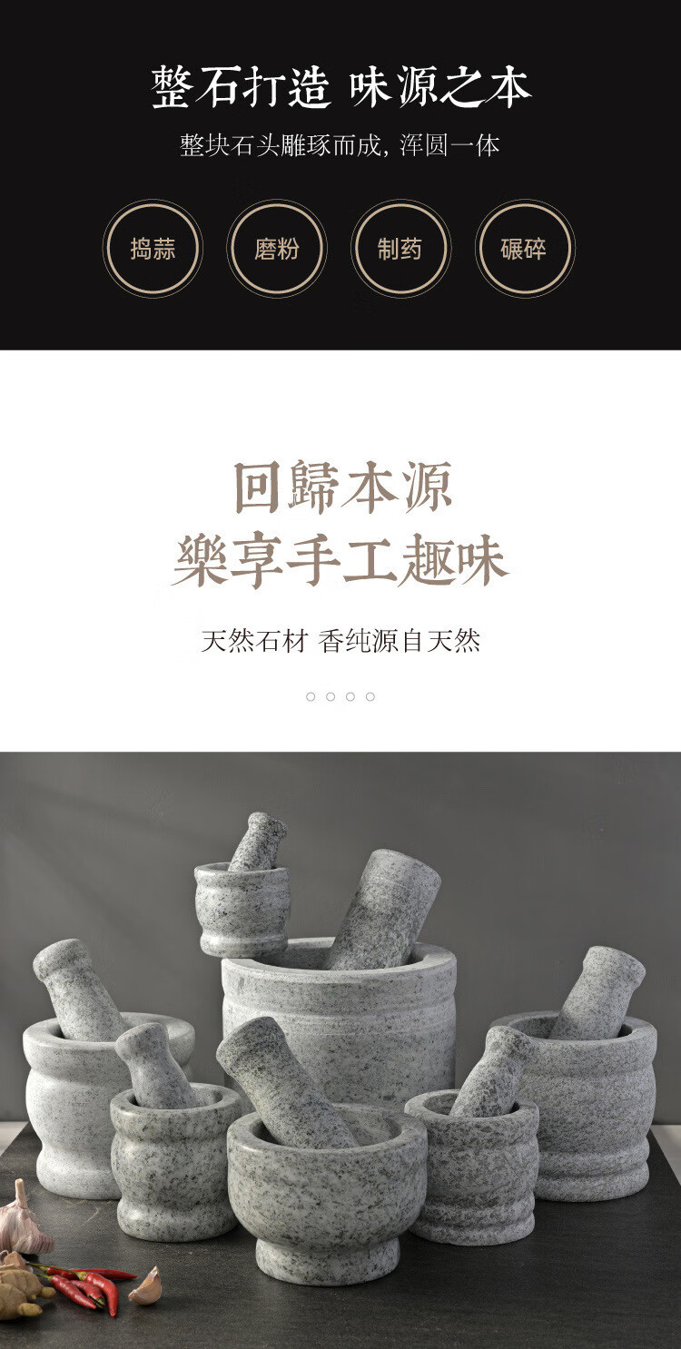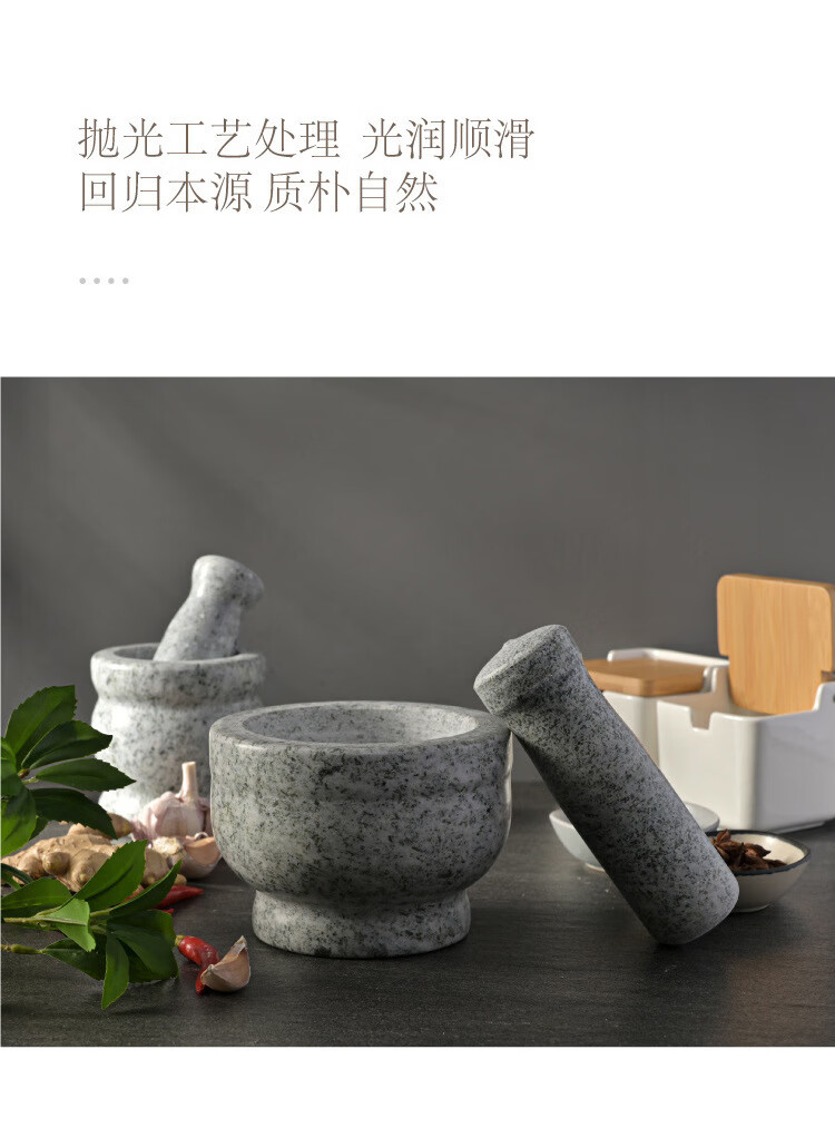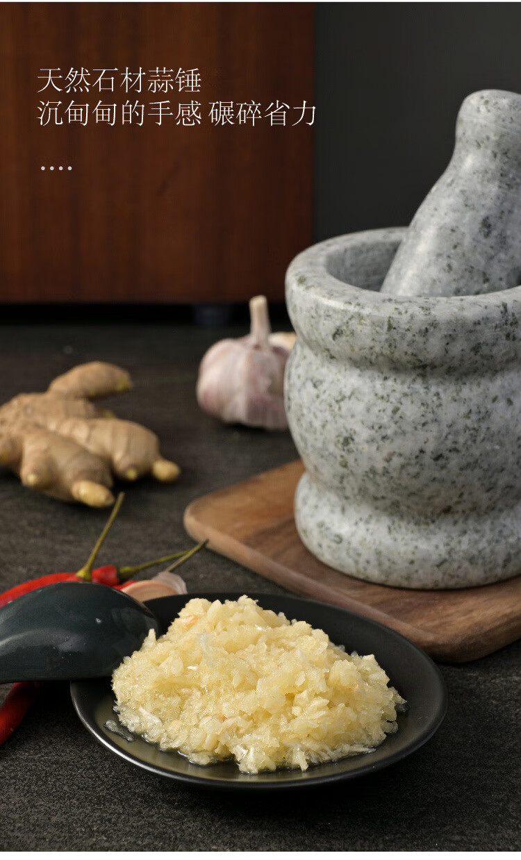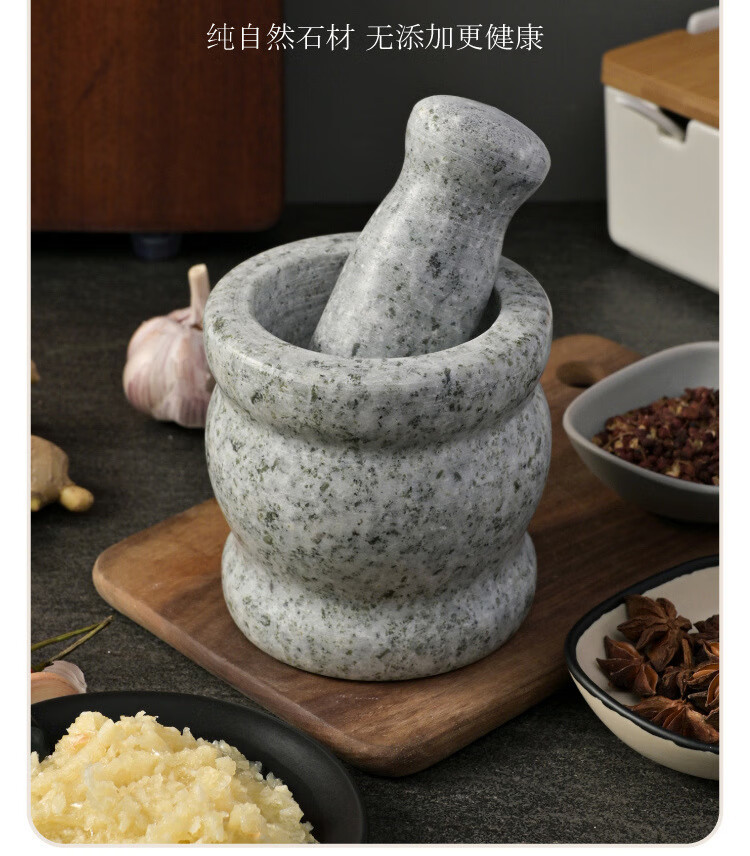 包装清单:1天然石头捣蒜器石臼子捣药罐研磨器家用蒜臼子剥蒜压蒜器打蒜泥