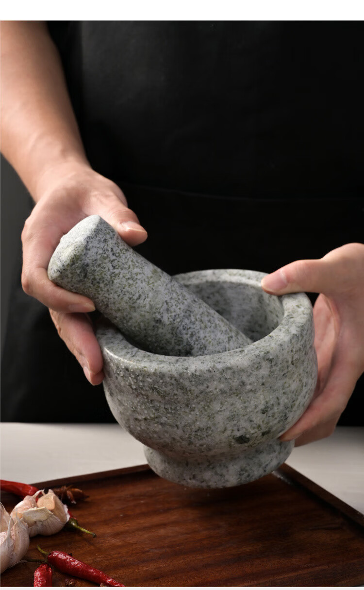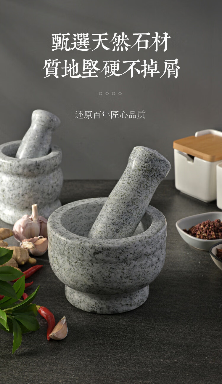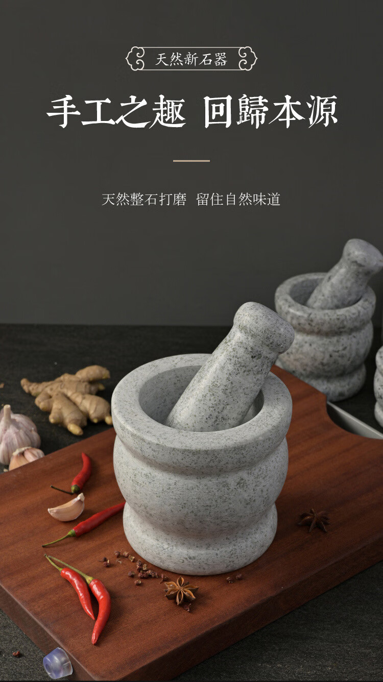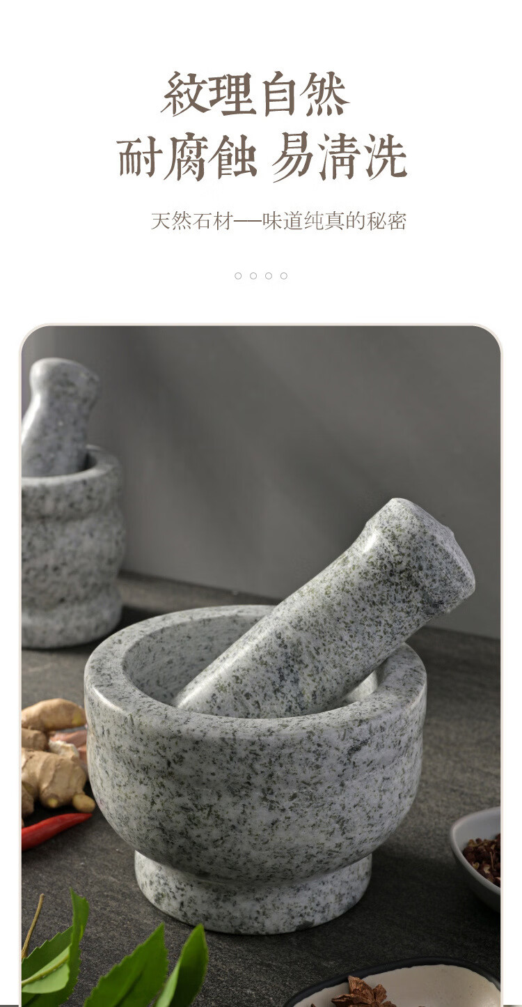 包装清单:1天然石头捣蒜器石臼子捣药罐研磨器家用蒜臼子剥蒜压蒜器打蒜泥