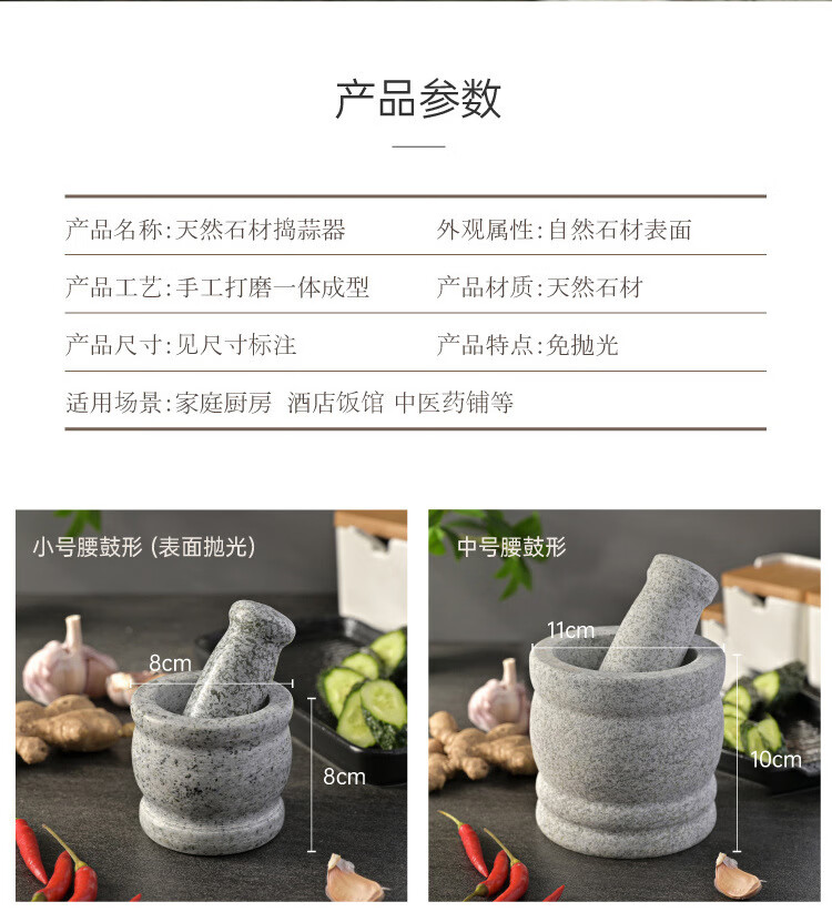 商品名称:天然石头捣蒜器石臼子捣药罐研磨器家用蒜臼子剥蒜压蒜器打蒜泥
